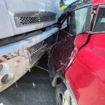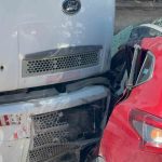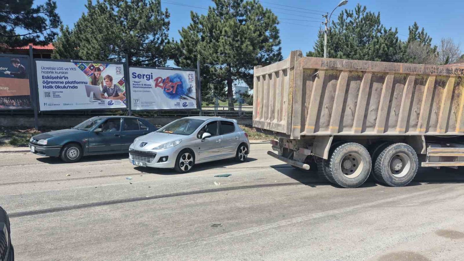 Eskişehir’de harfiyat kamyonunun önüne katarak sürüklediği araçta bulunan 3 şahıs şans eseri kazayı ufak sıyrıklarla atlattı.