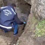 Samsun’un Tekkeköy ilçesinde kanalizasyon bahanesiyle 6 metre derinliğinde çukur açan 4 defineci, polis ekiplerince suçüstü yakalandı.