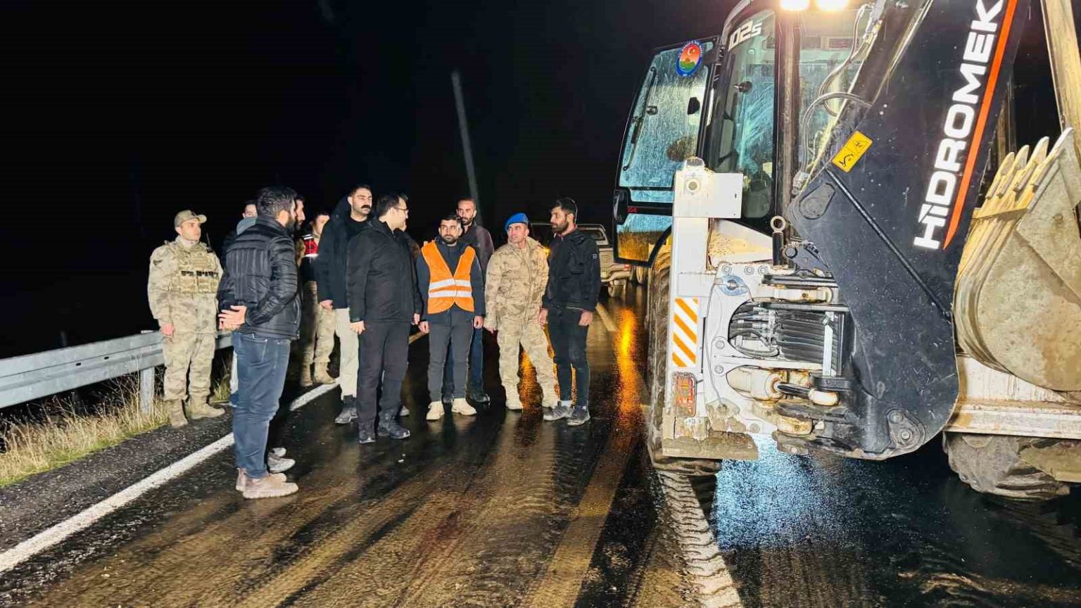 Şırnak’ta kapanan yolu açmaya çalışan ekipler ölümden döndü. Dün akşam saatlerinde aşırı yağış nedeniyle kapanan ilçe yolu ekipler tarafından açılırken, bir anda dağdan kopan kaya parçaları yola savruldu. Bu sırada bölgede bulunan Beytüşşebap Kaymakamı Mehmet Furkan Taşkıran ve beraberindekiler ölümden döndü.