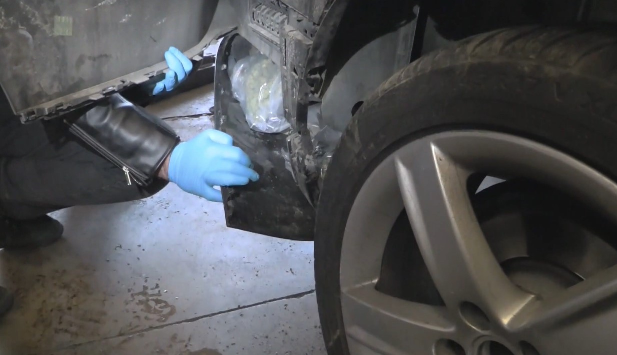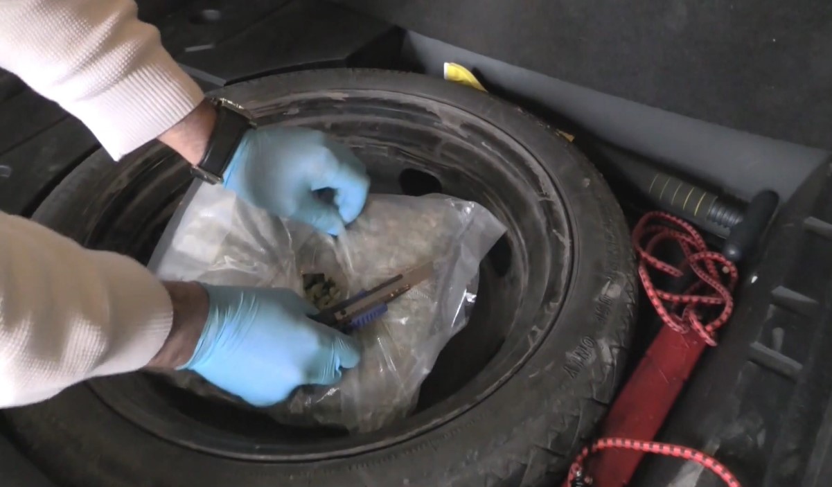 Narkotik Dedektör Köpekleri “Füge” ve “Bodri”nin katılımıyla yapılan aramada, köpeklerin koltuk altları ve motor bölümüne tepki vermesi üzerine araçta özel olarak hazırlanmış gizli bölmeler tespit edildi. Yapılan kontrollerde, özel tertibatlı düzenek içerisinde 68 adet şeffaf vakumlu poşet içinde toplam 22 kilo 662 gram esrar ele geçirildi.