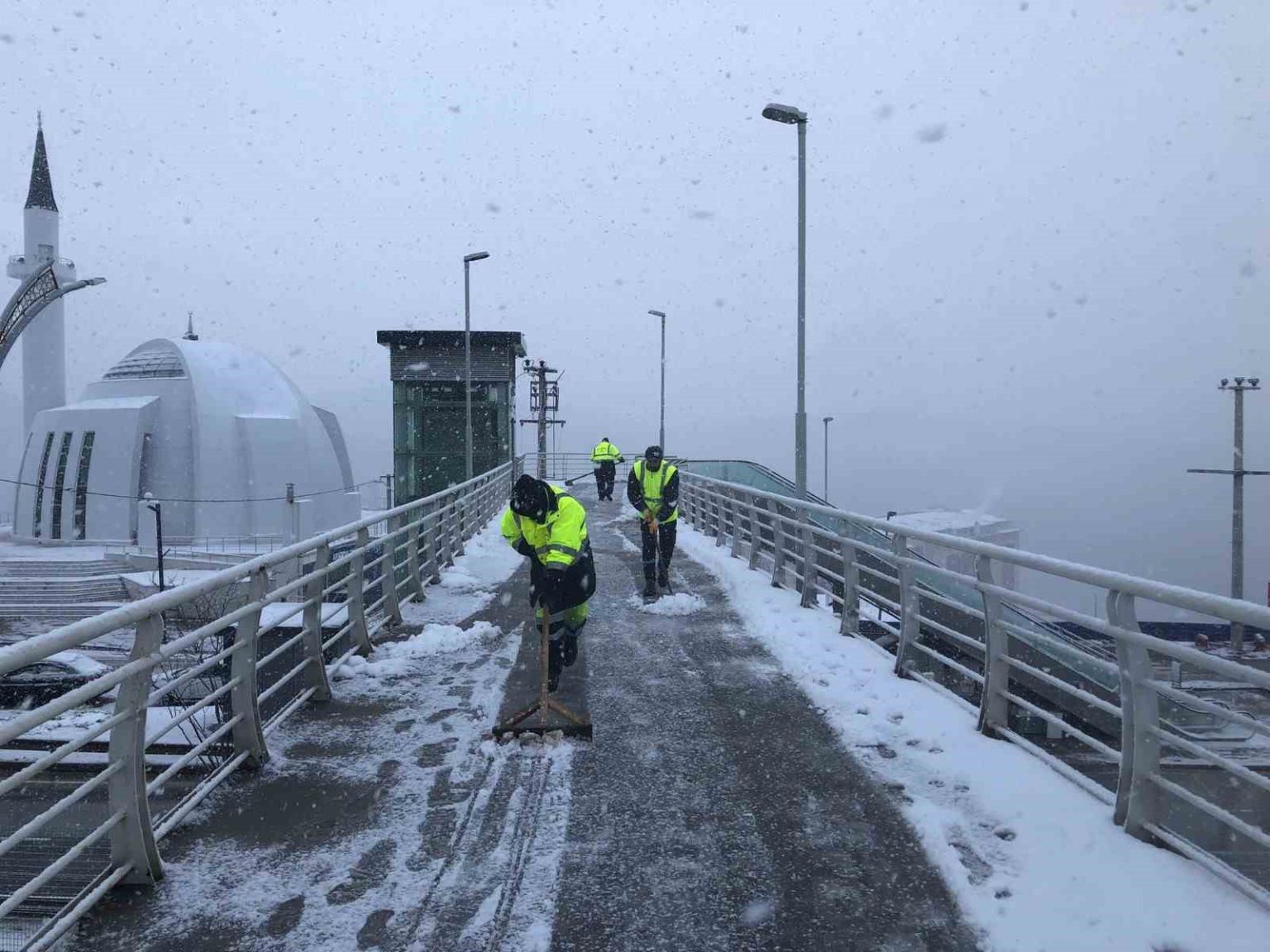Kent merkezinde ulaşımın yanı sıra yaya güvenliği için de çalışmalar sürdürülüyor. Ana arter, cadde ve bulvarların yanı sıra kaldırımlarda da kar küreme ve temizlik çalışmaları yapılıyor. Bu kapsamda Umuttepe Kocaeli Üniversitesi Hastanesi çevresindeki yol ve kaldırımlar ile poliklinik ve acil servis girişlerinde kar temizliği ve tuzlama çalışmaları devam ediyor. Yaya geçiş güzergahları, durak çevreleri ve yoğun kullanılan alanlarda buzlanmaya karşı önlemler artırılırken, hastane bölgesinde yaya ve araç trafiğinin kesintisiz şekilde devam etmesi sağlanıyor.