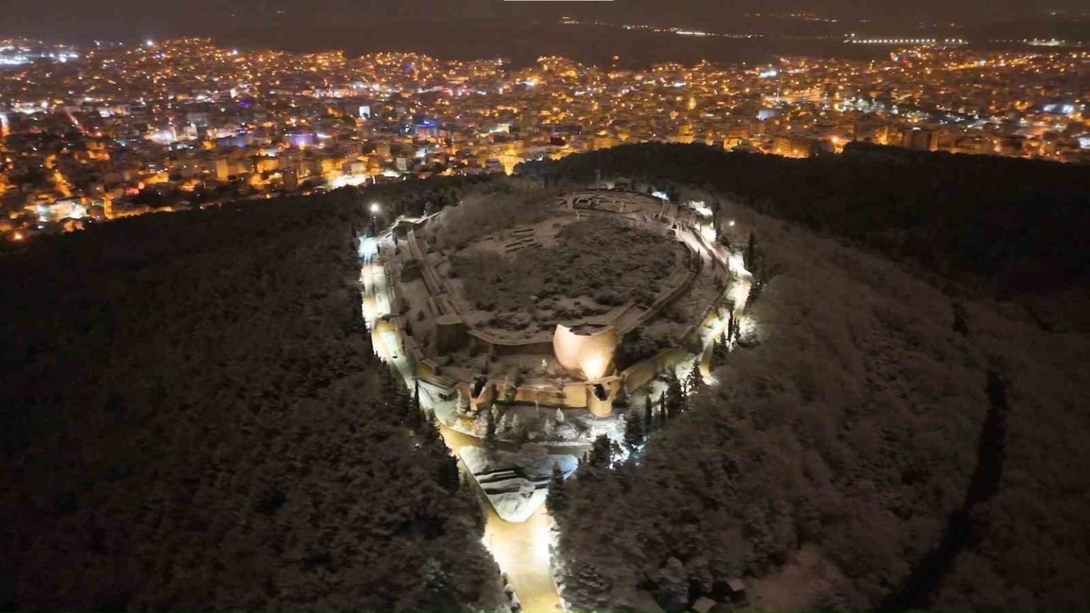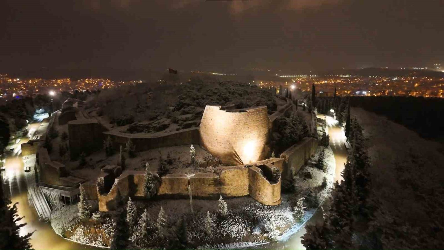 İstanbul’un en yüksek noktalarından biri olan tarihi Aydos Kalesi, etkili olan kar yağışının ardından beyaza büründü. Karla kaplanan kale ve çevresinde oluşan kartpostallık manzara havadan görüntülendi.