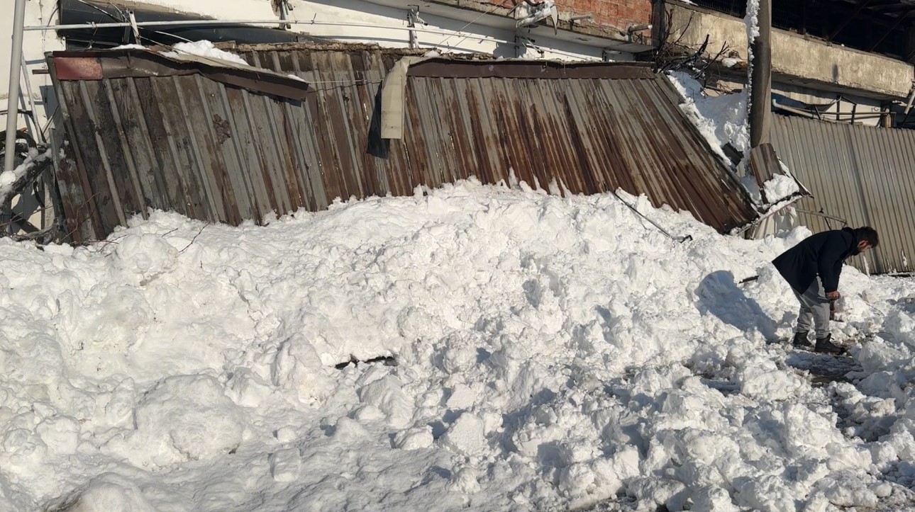 Kar birikintileri iş yerlerinin sundurmalarını çökertti