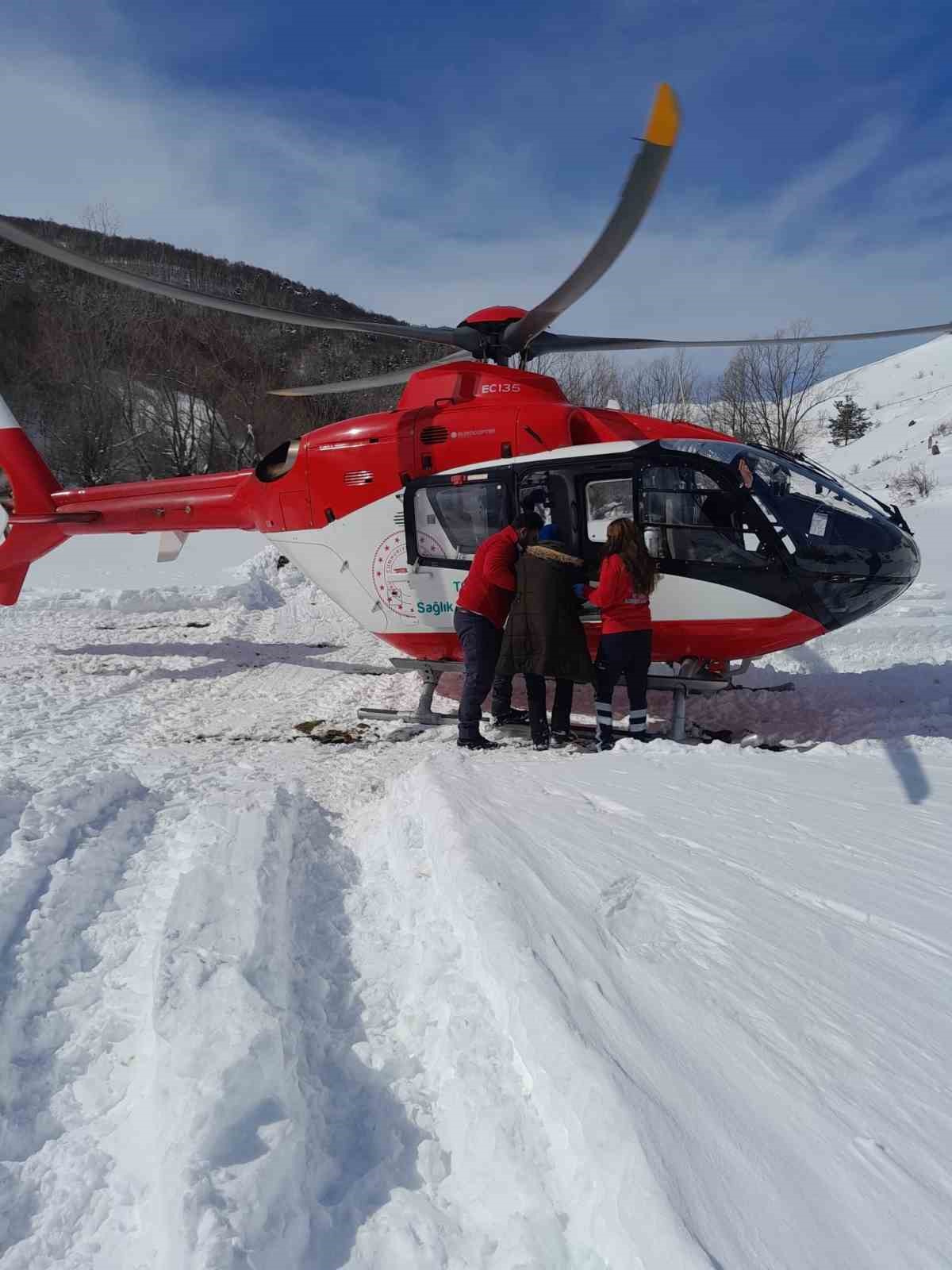 Kar engeli ambulans helikopterle aşıldı