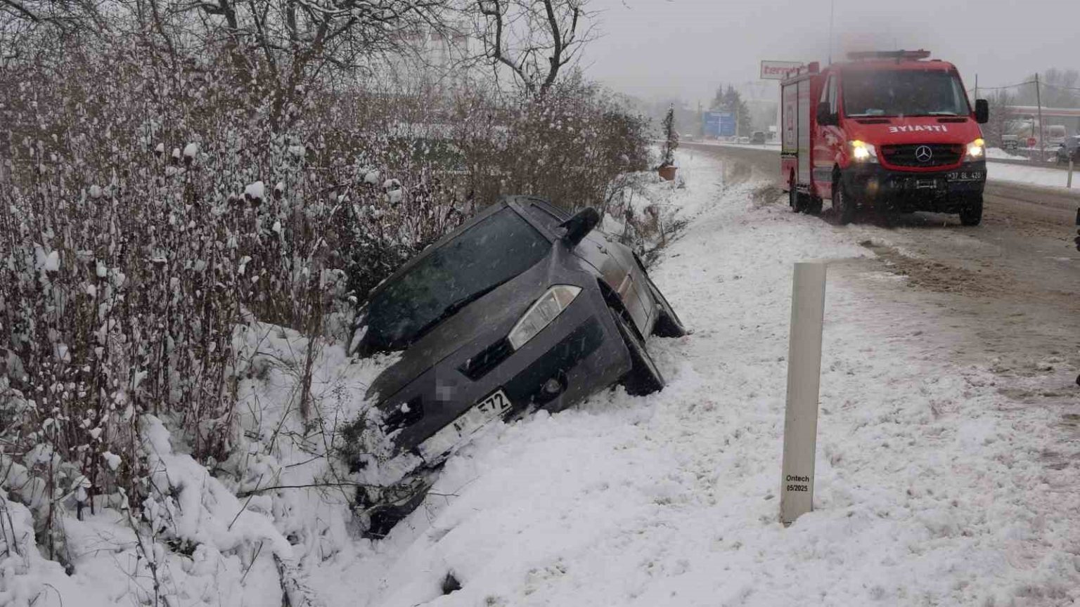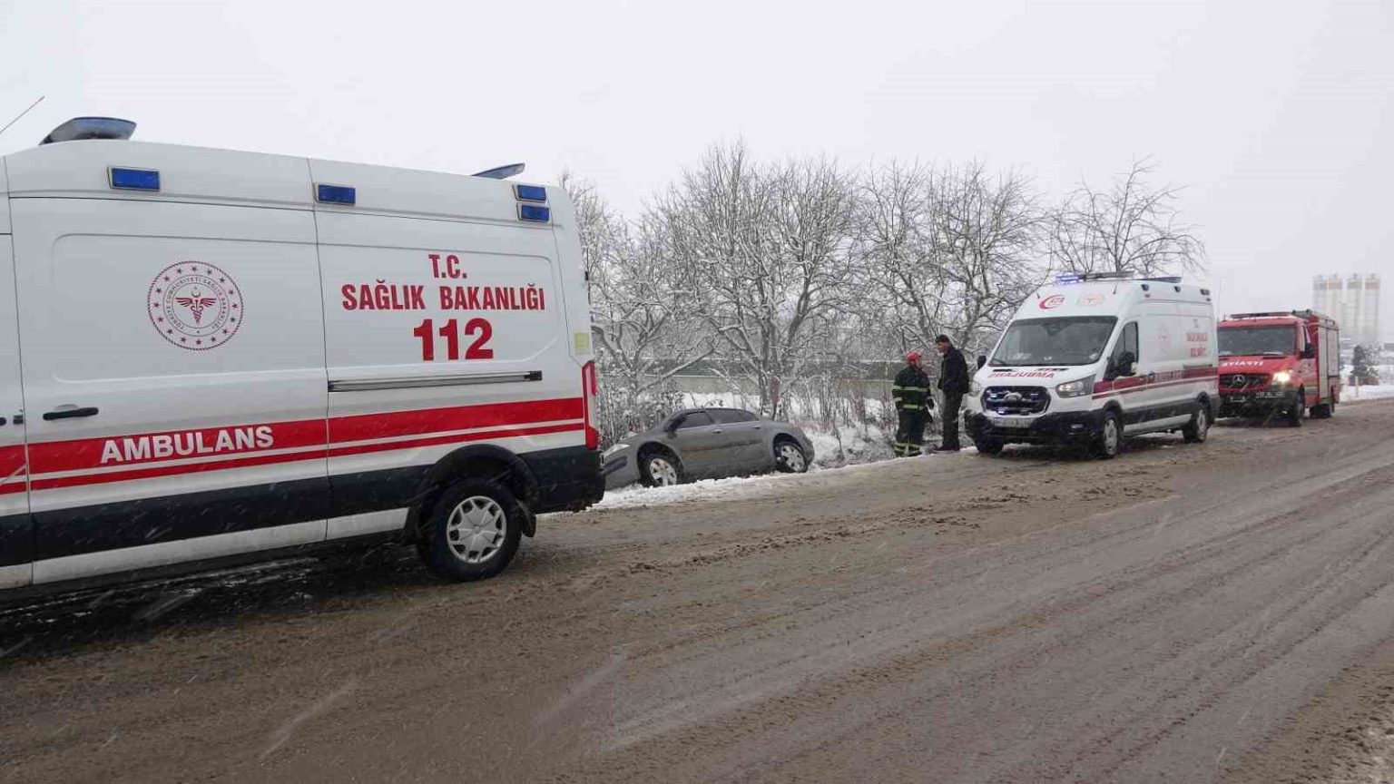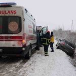 Kar kazayı beraberinde getirdi, yan yatan otomobildeki 4 kişi yaralandı