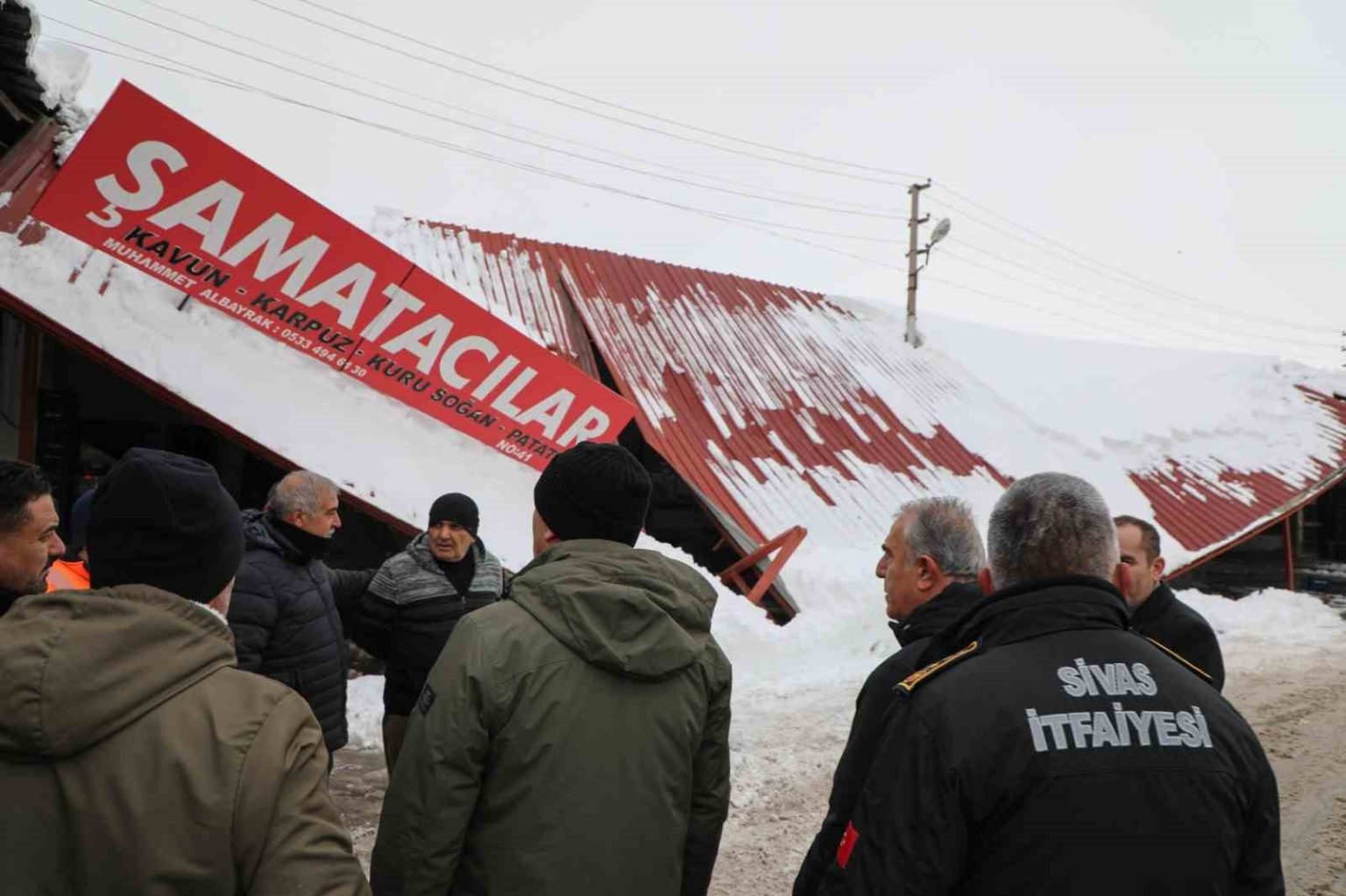 Sivas’ta etkili olan kar yağışı sonrası toptan sebze halinde bazı iş yerlerinin önündeki sundurmalarda çökme meydana geldi. Olayda can kaybı yaşanmazken maddi hasar oluştu.
