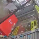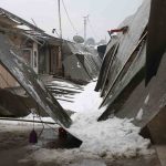 Hatay’da etkili olan şiddetli yağışla birlikte biriken kar kütlesini taşıyamayan prefabrik çarşısının plastik çatısı yıkıldı. Çatının yerle bir olduğu anlar kameraya yansırken olayda yaralanan olmadı.