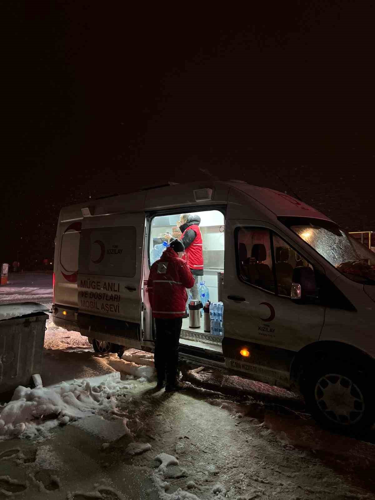 Kastamonu’nun Seydiler ilçesinde kar sebebiyle ulaşıma kapatılan yolda AFAD ve Kızılay ekiplerinden vatandaşlara sıcak çorba ve çay ikram edildi.
