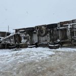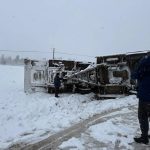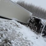 Kastamonu’da kar yağışı sebebiyle devrilen tırın sürücüsü yara almadan kurtuldu.
