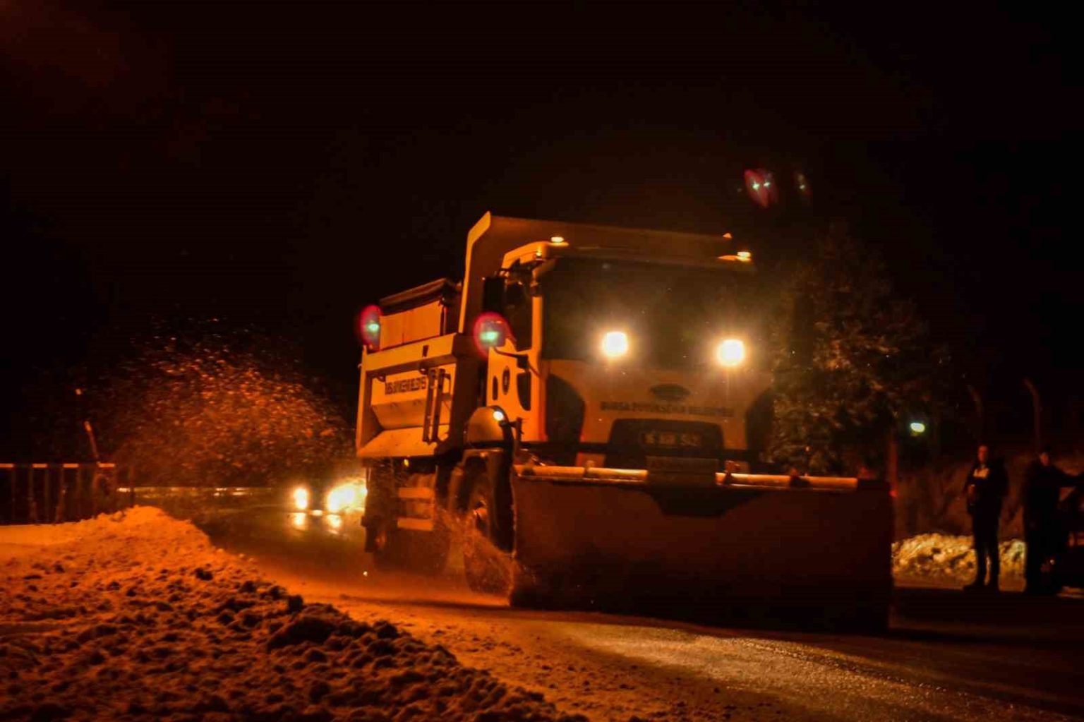 Bursa Büyükşehir Belediyesi, etkisini artıran kar yağışına rağmen kent genelinde ulaşımın aksamaması için çalışmalarını aralıksız sürdürüyor.
