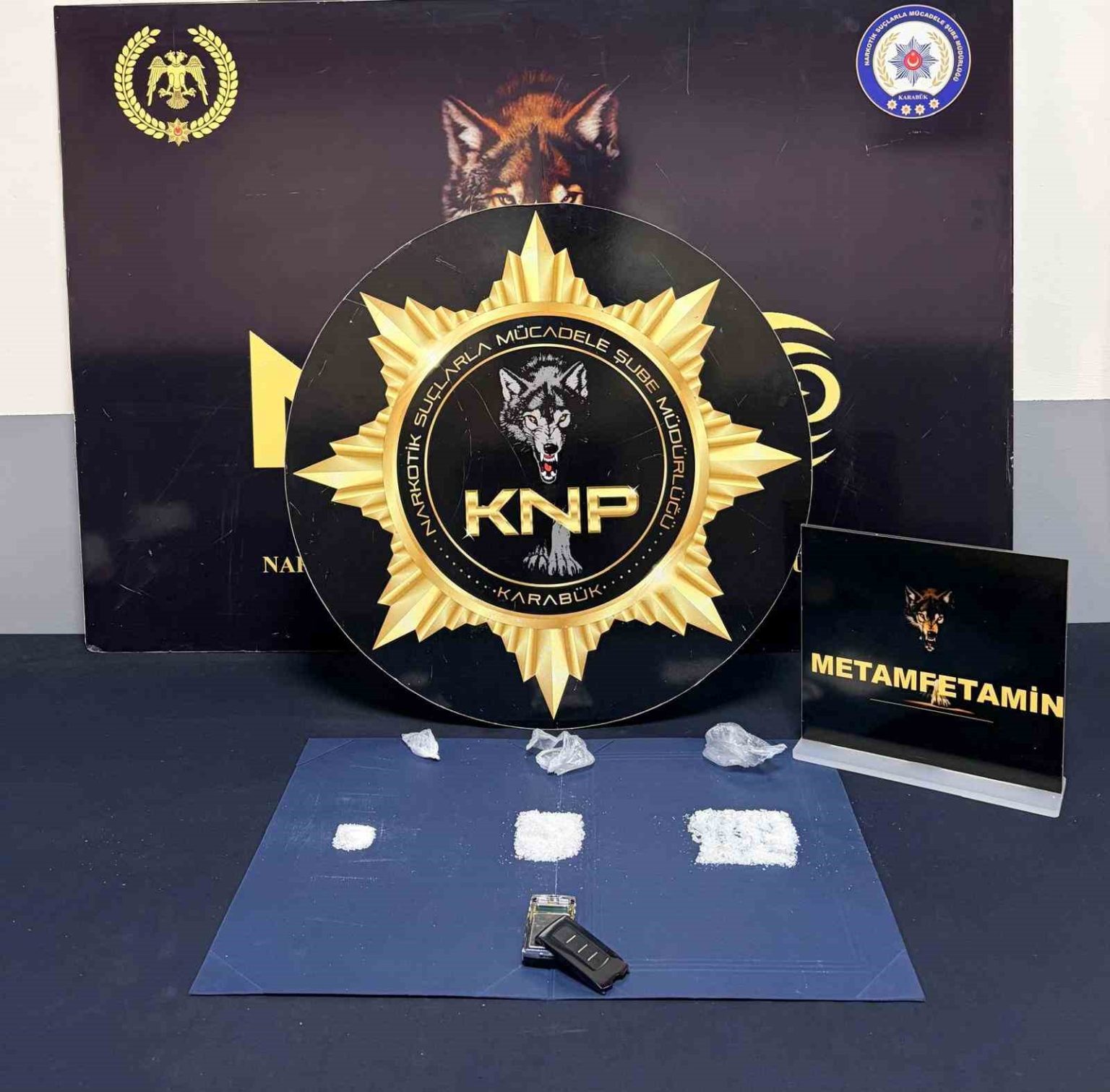 Yapılan aramalarda 8 kutu içerisinde toplam 451 adet sentetik ecza hap, 1,40 gram kokain, 0,91 gram esrar, 2,47 gram (439 içimlik) peçeteye emdirilmiş sentetik kannabinoid (bonzai), 5,03 gram tütüne emdirilmiş sentetik kannabinoid (bonzai), 16,17 gram metamfetamin ile 1 adet hassas terazi ele geçirildi.