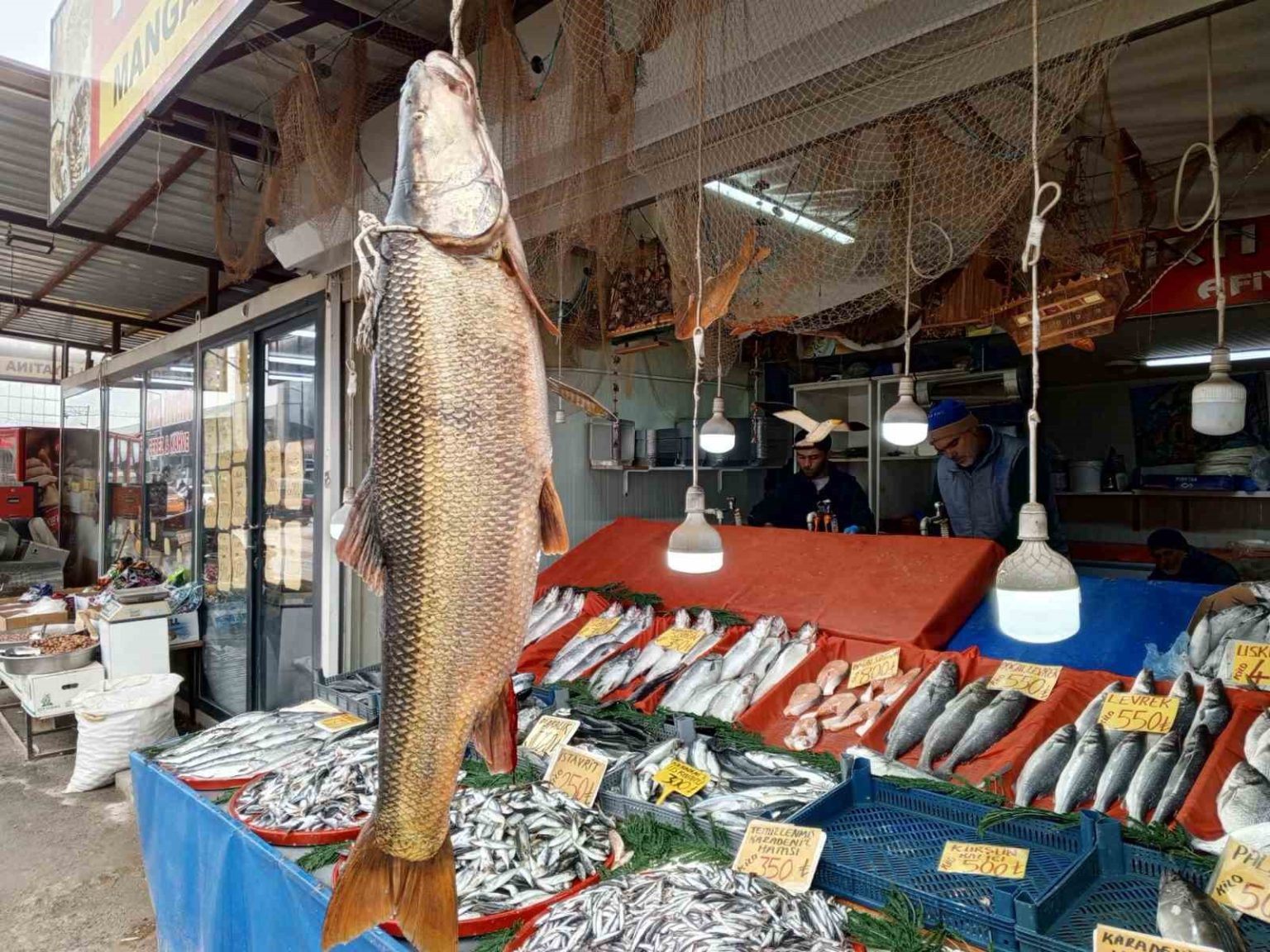 Malatya’da Karakaya Baraj Gölü’nde yakalanan 42 kilogramlık turna balığı, tezgahta vatandaşların ilgisini çekti.