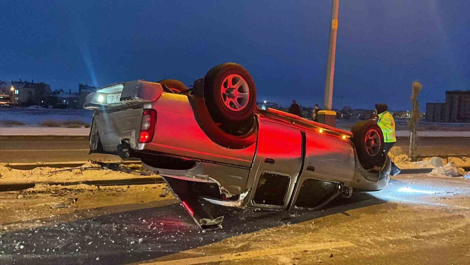 Kaza, akşam saatlerinde Elmaşehir Mahallesi Şehit Hamza Çetin Bulvarı üzerinde meydana geldi. Edinilen bilgiye göre, M.A.Ö. idaresindeki 70 EU 459 plakalı Nissan marka kamyonet buzlanma nedeniyle kayganlaşan yolda kontrolden çıkması sonucu refüje çarparak devrildi. Kazada sürücü ile araçta bulunan A.G. yaralandı. İhbar üzerine olay yerine sağlık ve polis ekipleri sevk edildi. Yaralılar kaza yerine gelen ambulanslarla Karaman Eğitim ve Araştırma Hastanesi’ne kaldırılarak tedavi altına alındı. Polis ekipleri buzlanan yolda güvenlik önlemi alırken, belediye ekipleri de solüsyon çalışması yaptı. Polisin kaza yerindeki incelemesinin ardından devrilen kamyonet çekiciyle yoldan kaldırıldı.