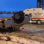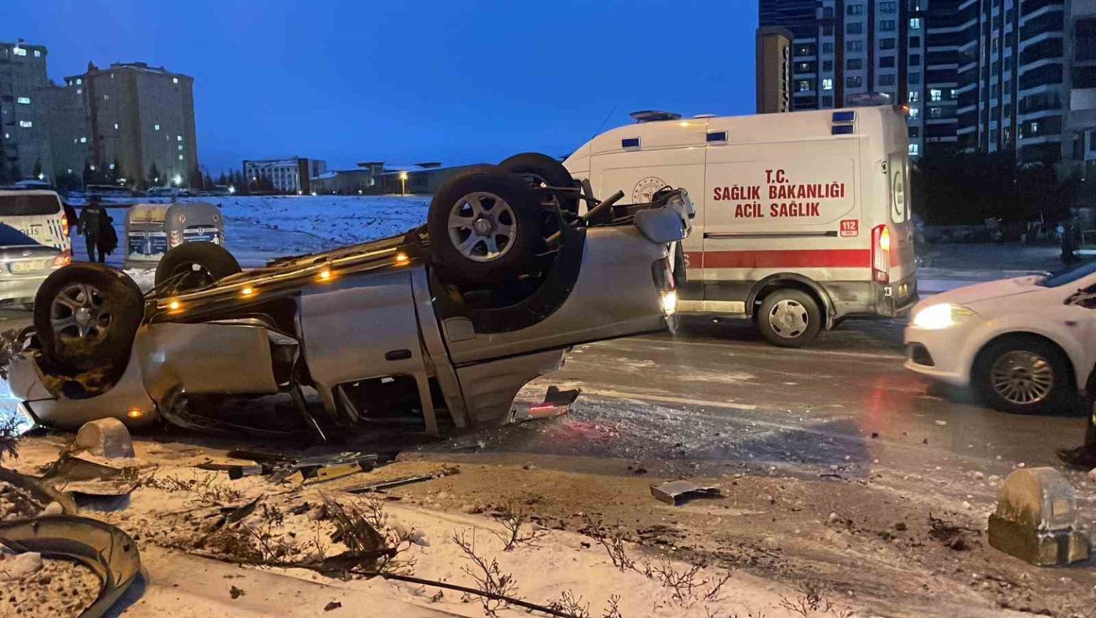 Karaman’da buzlanma nedeniyle kontrolden çıkan kamyonetin refüje çarparak devrilmesi sonucu 2 kişi yaralandı.