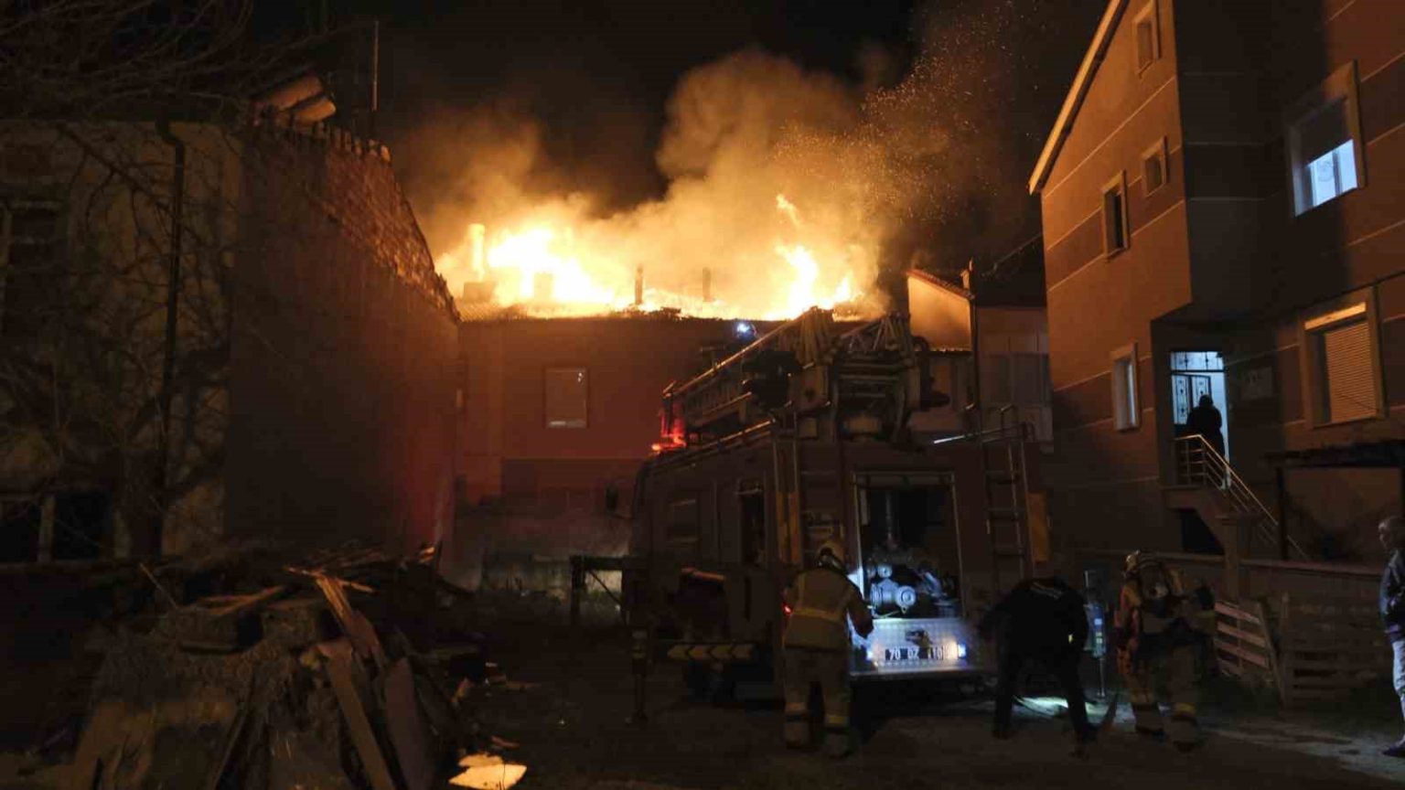 Yangın, gece saat 23.00 sıralarında Mümine Hatun Mahallesi 1501. Sokak’ta bulunan 2 katlı müstakil evin çatısında çıktı. Edinilen bilgiye göre, müstakil evin çatısında henüz bilinmeyen bir nedenle başlayan yangında kısa sürede büyüyerek çatıyı sardı. Alevlerin yükselmesi üzerine mahalle sakinleri panikle sokağa çıktı. İhbar üzerine olay yerine itfaiye, sağlık ve polis ekipleri sevk edildi. Polis ekipleri sokak üzerinde güvenlik önlemi alırken, itfaiyede yangına müdahale etti. Yangın itfaiyenin yaklaşık 1 saatlik çalışması sonucu tamamen kontrol altına alınarak söndürüldü. Dumandan etkilenen 3 kişi ise olay yerinde yapılan ilk müdahalenin ardından tedbir amaçlı ambulansla Karaman Eğitim ve Araştırma Hastanesi’ne kaldırıldı. Yangının duyulmasının ardından olay yerine gelen İl Emniyet Müdürü Mehmet Turhan da söndürme çalışmalarını takip ederek bilgi aldı.