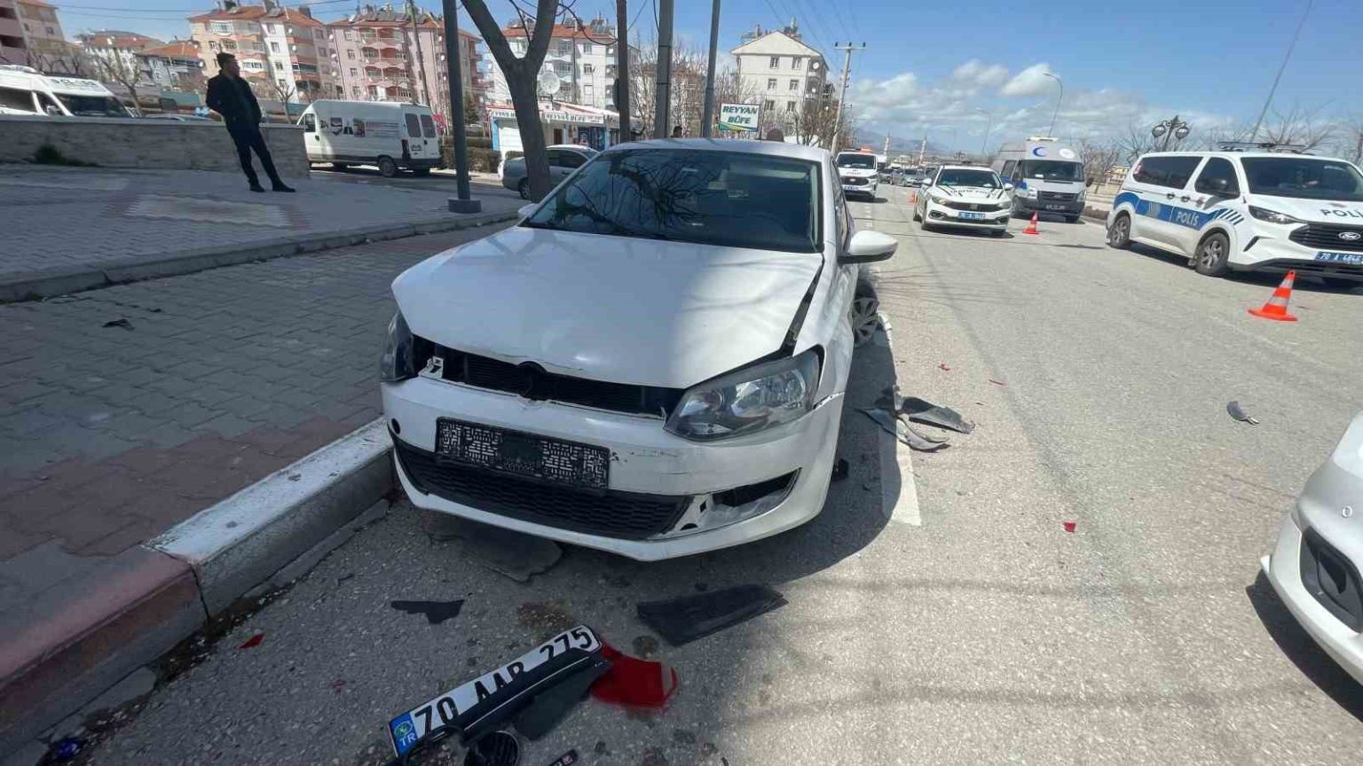 Kaza, Gevher Hatun Mahallesi Şehit Ömer Halisdemir Caddesi’nde meydana geldi. Edinilen bilgiye göre, T.A. (45) idaresindeki 07 BHH 230 plakalı hafif ticari araç, sürücüsünün direksiyon hakimiyetini kaybetmesi sonucu yol kenarında park halinde bulunan 70 AAB 275 plakalı Volkswagen marka otomobile çarptı. Çarpmanın şiddetiyle savrulan otomobil de önünde duran 70 DU 397 plakalı otomobile çarptı. Kazada, park halindeki 70 AAB 275 plakalı araçta bulunan kadın sürücü Ç.K. (39) yaralandı. İhbar üzerine olay yerine sağlık ve polis ekipleri sevk edildi. Yaralı kadın, olay yerinde yapılan ilk müdahalesinin ardından ambulansla Karaman Eğitim ve Araştırma Hastanesi’ne kaldırılarak tedavi altına alındı. Kazaya karışan üç araçta da maddi hasar oluşurken, bir süreliğine trafiğe kapanan yol tek şeridi araçların kaldırılmasının ardından yeniden ulaşıma açıldı.