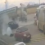 Öte yandan kaza anı bir işletmenin güvenlik kamerasına saniye saniye yansıdı. Görüntülerde kamyonla çarpışan otomobilin savrularak halk otobüsüne çarptığı ve çarpışma sırasında yerinden çıkan LPG tankının yola fırladığı anlar yer aldı.