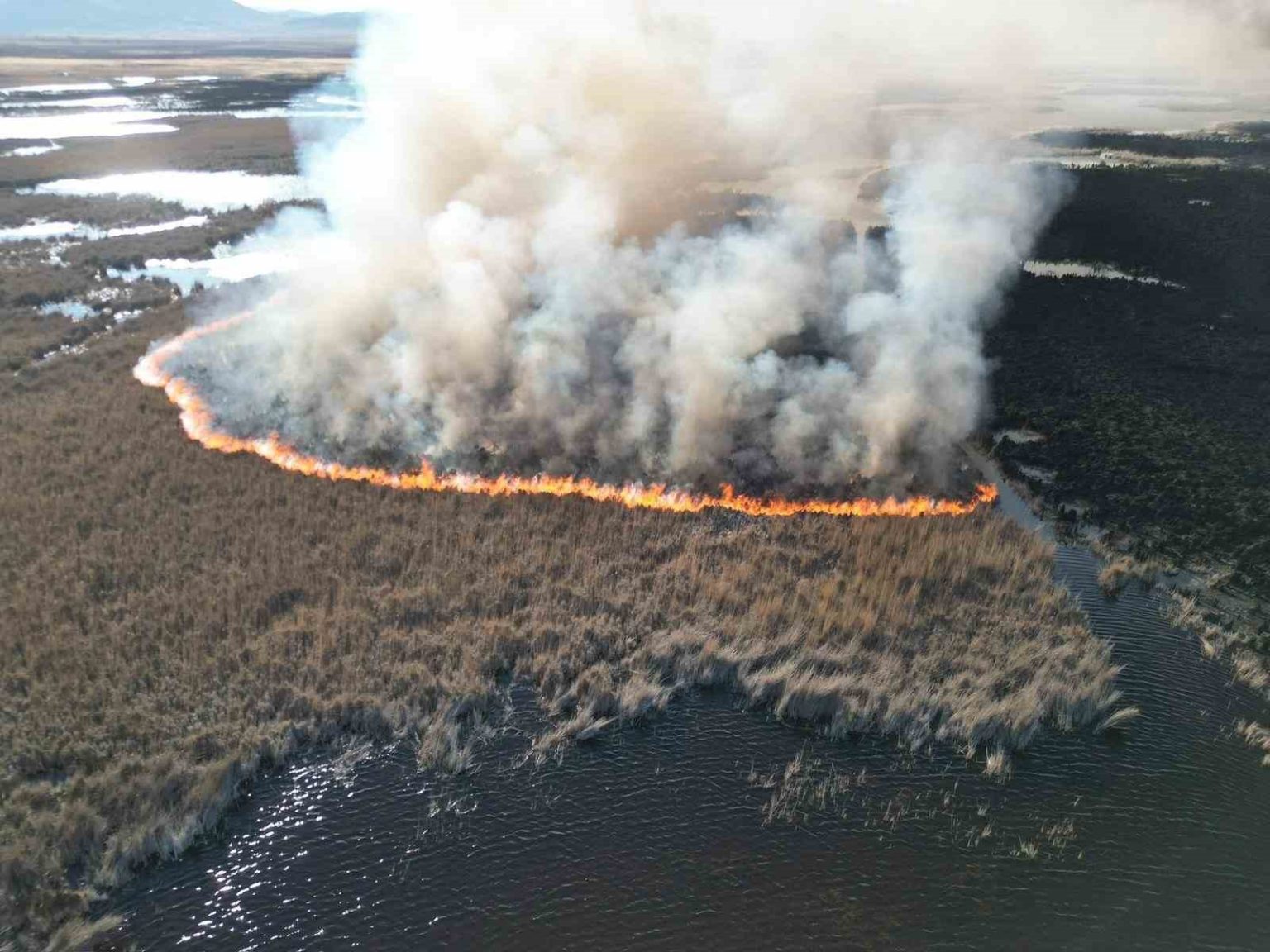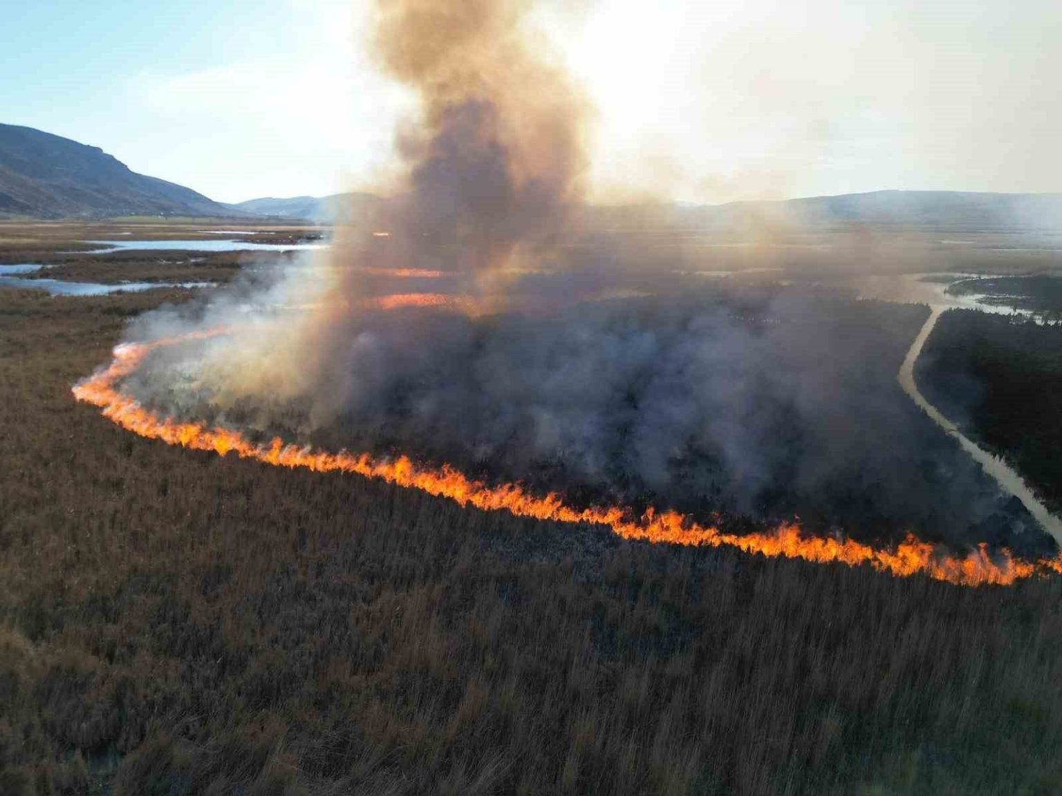 Karamık Gölü’ndeki sazlık alanlarda yangın