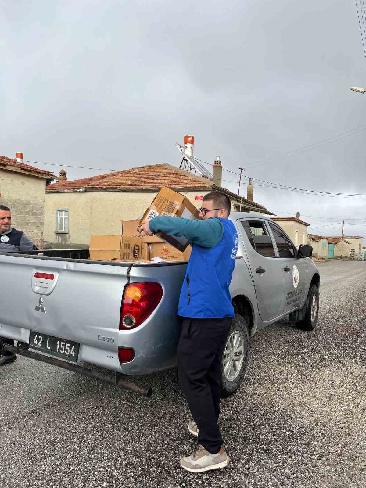 Gıda dağıtımında Karapınar İlçe Gençlik ve Spor Müdürlüğü gönüllü öğrencileri de destek verdi.
