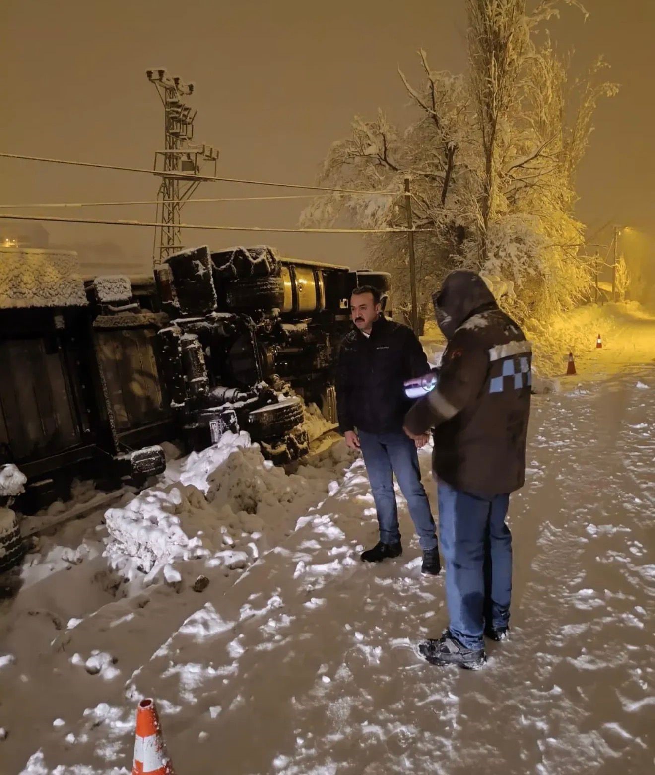 Adıyaman’ın Çelikhan ilçesinde CNG Tankeri yoğun kar yağışında kayarak şarampole devrildi.