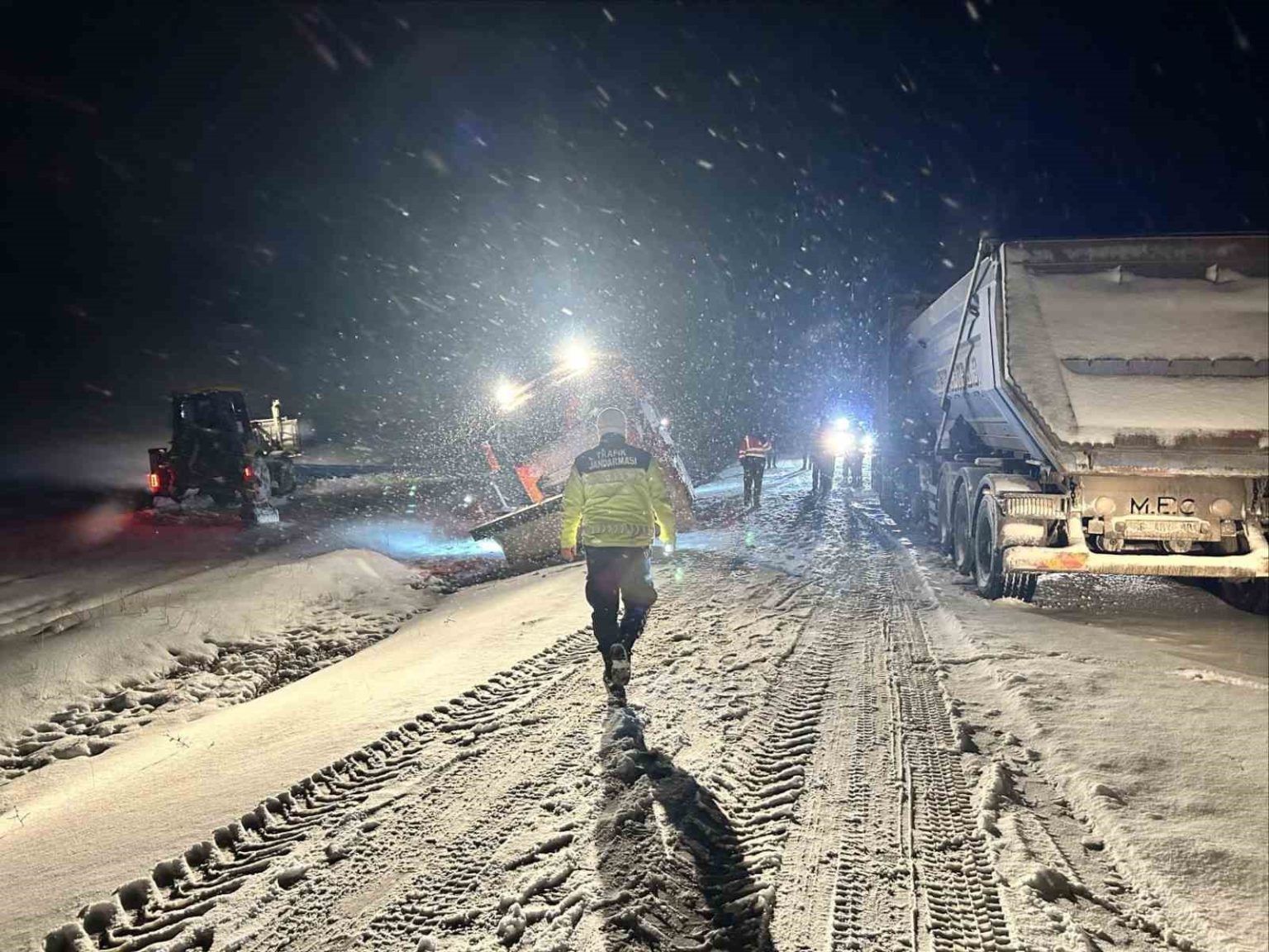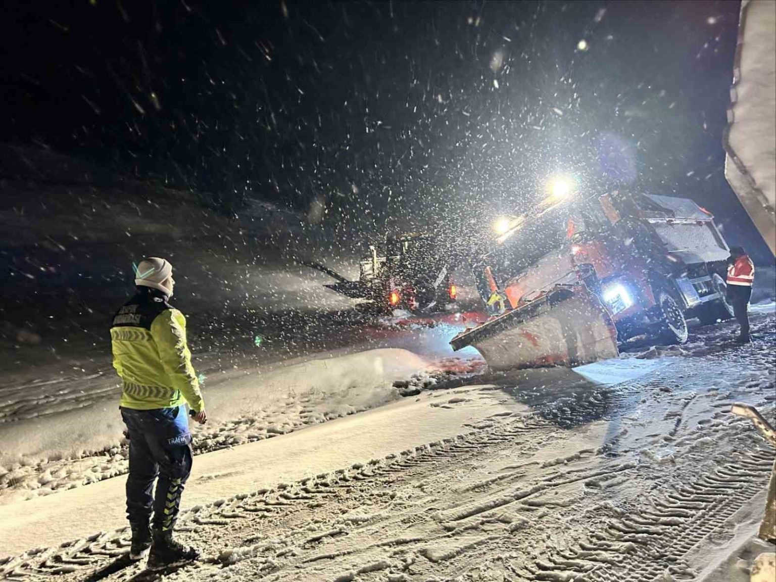 Ekipler, vatandaşların kış şartlarına uygun ekipman bulundurmaları, hız kurallarına riayet etmeleri ve zorunlu olmadıkça olumsuz hava şartlarında yola çıkmamaları hususunda uyarıda bulundu.