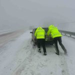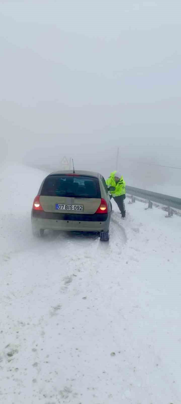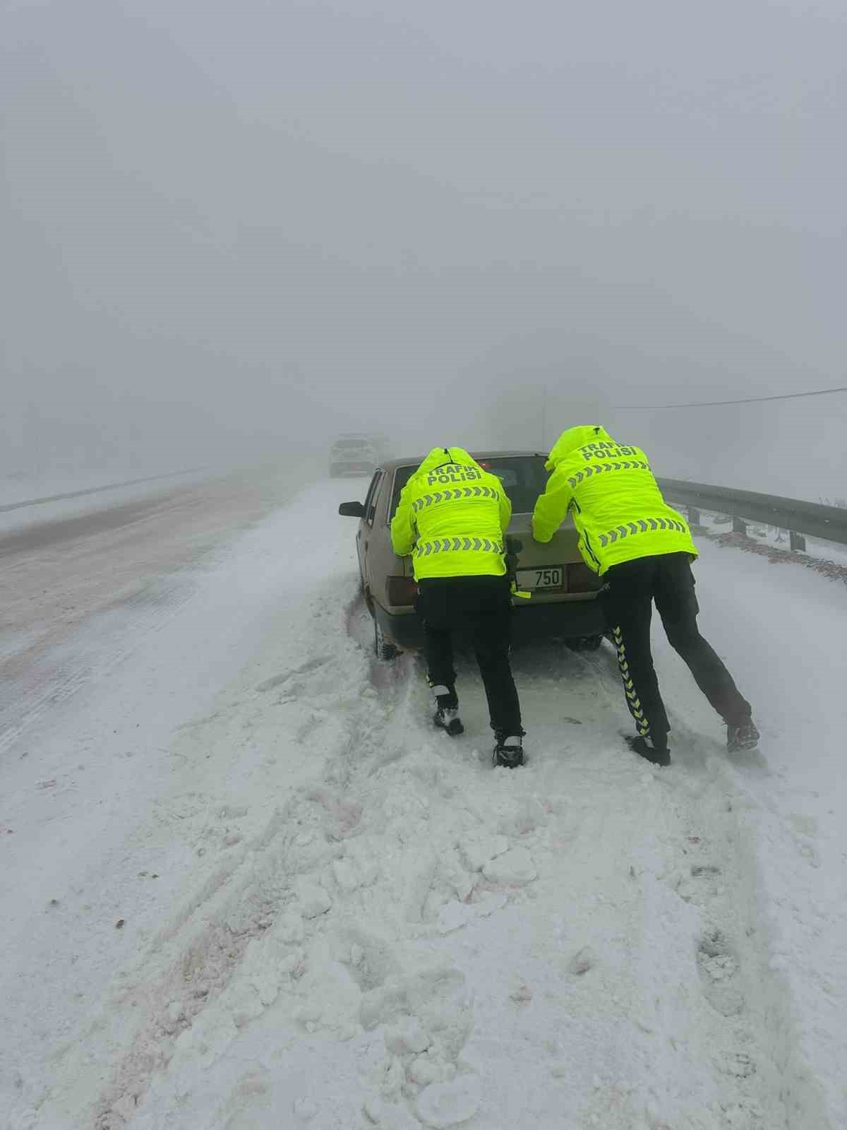 Karla kaplı yollarda mahsur kalan vatandaşların yardımına polis koştu