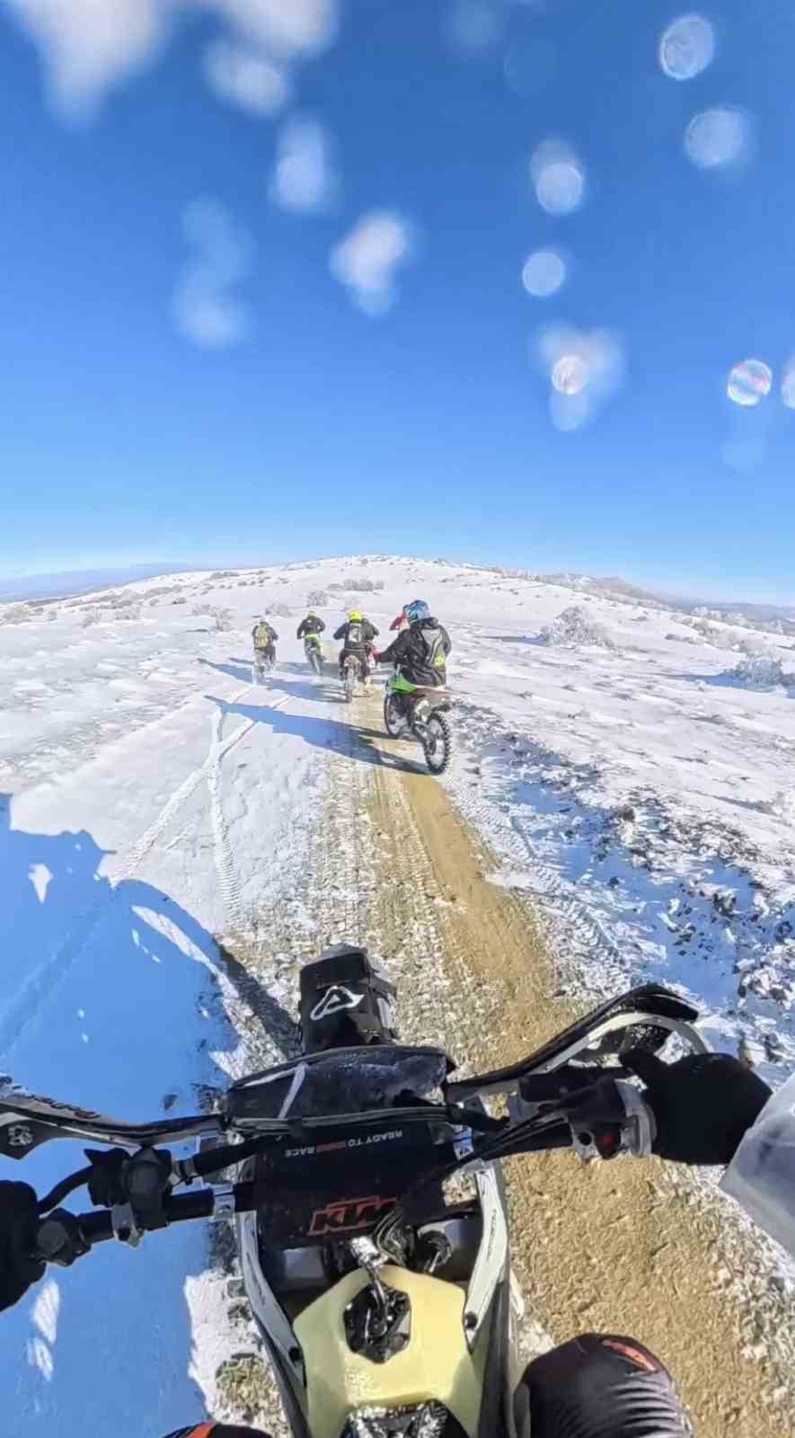 Eskişehir’den yola çıkan ve Veysel Arıkoç koordinatörlüğünde düzenlenen cross motosiklet turu, karlı dağlarda verilen zorlu bir yaşam mücadelesine dönüştü. Sadece dağ yollarını kullanarak Bilecik’in İnhisar ilçesine ulaşmayı hedefleyen 11 kişilik grup, sarp arazi ve ağır kış şartları nedeniyle büyük güçlük yaşadı.