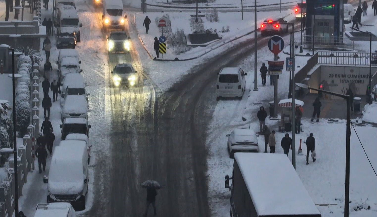 İstanbul’da etkili olan kar yağışı nedeniyle kent beyaza büründü. Sabahın ilk ışıklarında işlerine gitmek için yola çıkan vatandaşlar kar süpriziyle karşılaştı. Karlı kaplanan yollarda ve kaldırımda yürüyen vatandaşlar, güçlük çekti. Bazı alanlarda merdivenlerden inmeye çalışanların düşmemek için büyük uğraş verildiği görüldü.