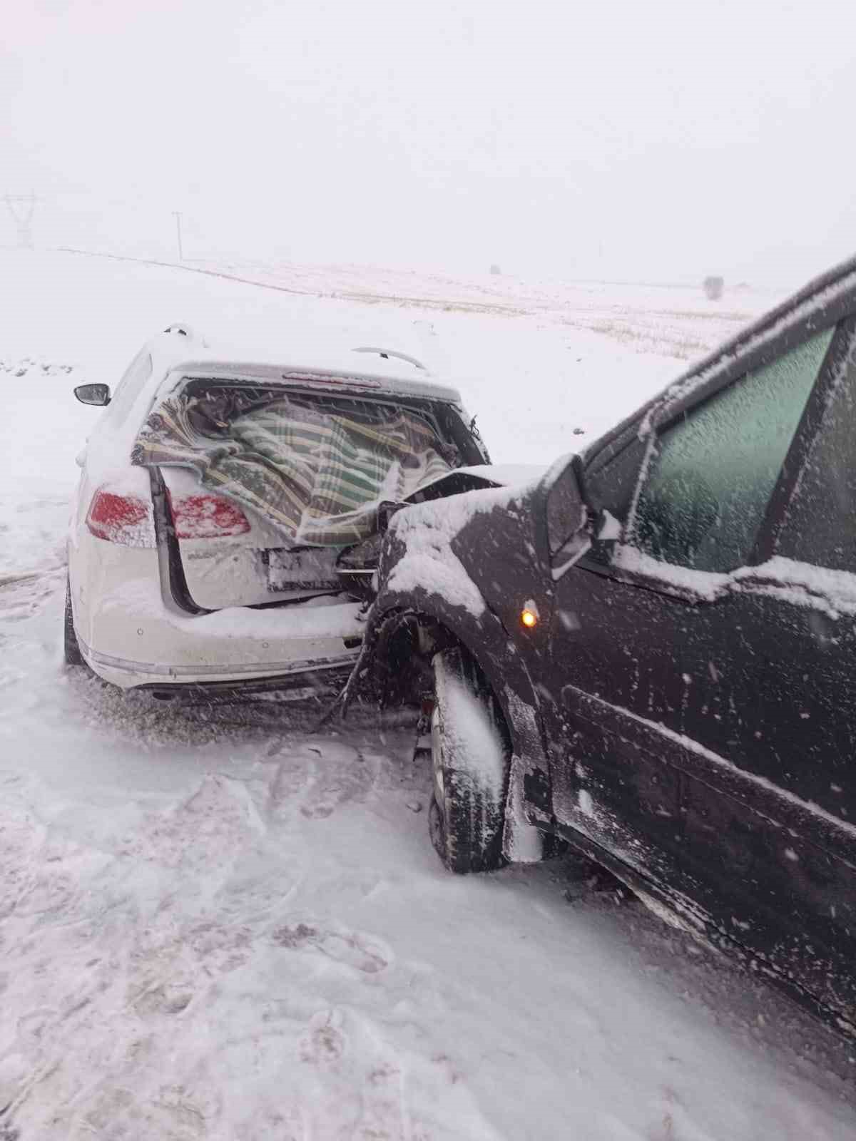 Karlı yolda araçlar çarpıştı: 1 yaralı