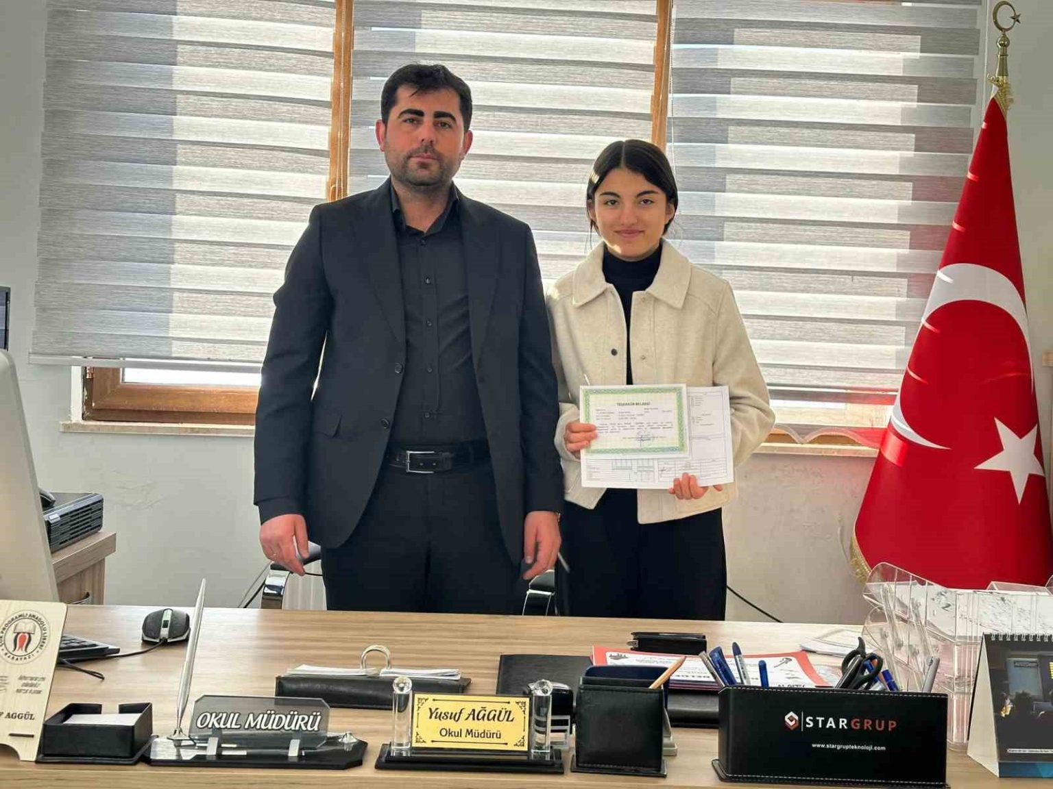 Okul Müdürü Yusuf Ağgül, öğrencilerin karne ve belgelerini velilere takdim etti.