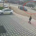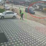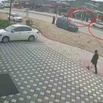 Hatay’da iş makinası yüklü ağır tonajlı tır sürücüsünün ışıkta bekleyen otomobile ve karşıdan karşıya geçmek için yolun sağında bekleyen öğrencilere çarpmamak için manevra yaparak refüje çıktığı anlar an be an kameraya yansıdı.