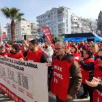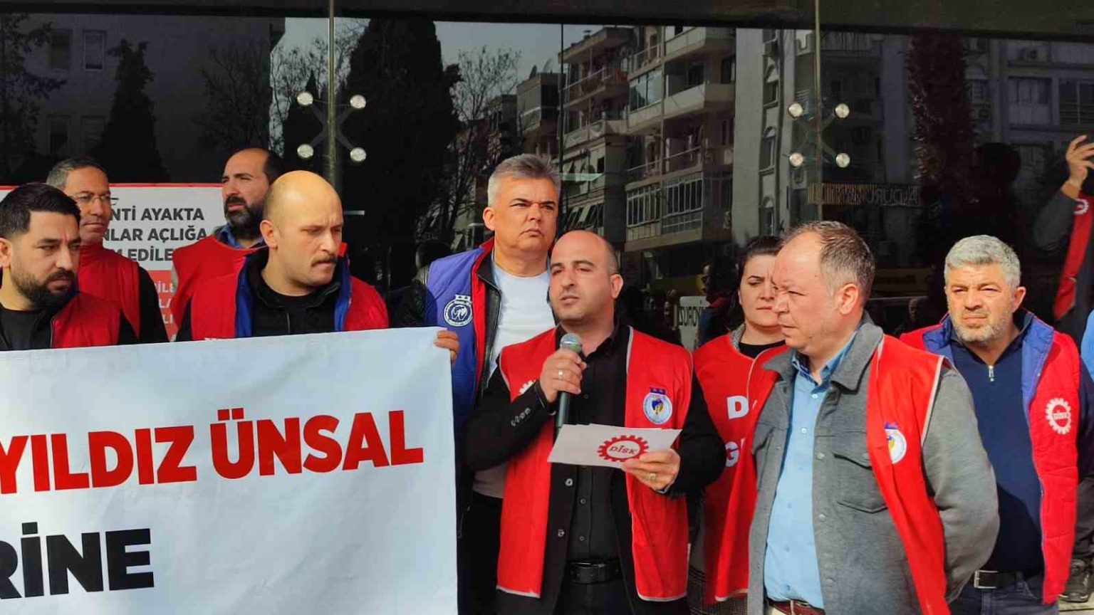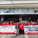 Karşıyaka Belediyesi bünyesindeki Kent A.Ş.’de görev yapan işçiler, ödenmeyen ücretleri ve çalışma şartlarındaki belirsizlikler nedeniyle protestolarını sürdürüyor. DİSK Genel-İş 10 Nolu Şube öncülüğünde belediyenin ana hizmet binası önünde toplanan işçiler, Belediye Başkanı Yıldız Ünsal ile yapılması planlanan görüşmenin iptal edilmesine tepki göstererek basın açıklaması yaptı.