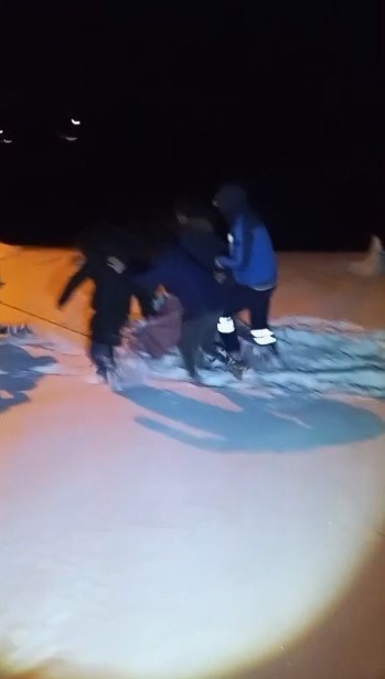 Kars’ta rahatsızlanan 85 yaşındaki kadın, yolun kar nedeniyle kapalı olması nedeniyle yakınları tarafından ip bağlanan leğenle yaklaşık 2 kilometre taşındı. Yaşlı kadının zorlu şartlarda ambulansa ulaştırıldığı anlar kameraya yansıdı.