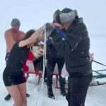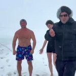 Çıldır Gölü’nün yüzeyindeki yaklaşık 40 santimetrelik buz tabakası, Dural Daşdemir tarafından balta ve küreklerle açıldı. “Eskimo” usulü balıkçılık yapılan bölgede açılan bu küçük pencere, bu kez balık tutmak için değil, adrenalin dolu bir yüzme deneyimi için kullanıldı.