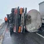Kars’ta devrilen zift yüklü tankere tır çarptı: 2 yaralı