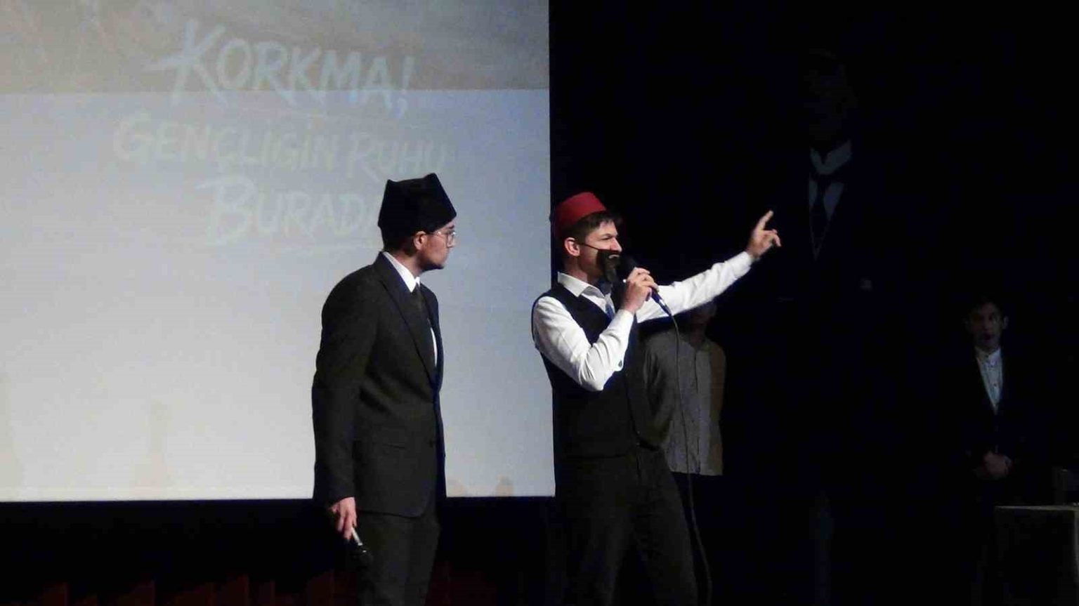 “Korkma! Gençliğin Ruhu Burada” temasıyla düzenlenen program, biyografik sinevizyon gösterimi ile başladı. Programda öğrenciler tarafından İstiklal Marşı’nın kıtaları okunurken, Mehmet Akif Ersoy’un hayatı ve edebi yönü de anlatıldı.
