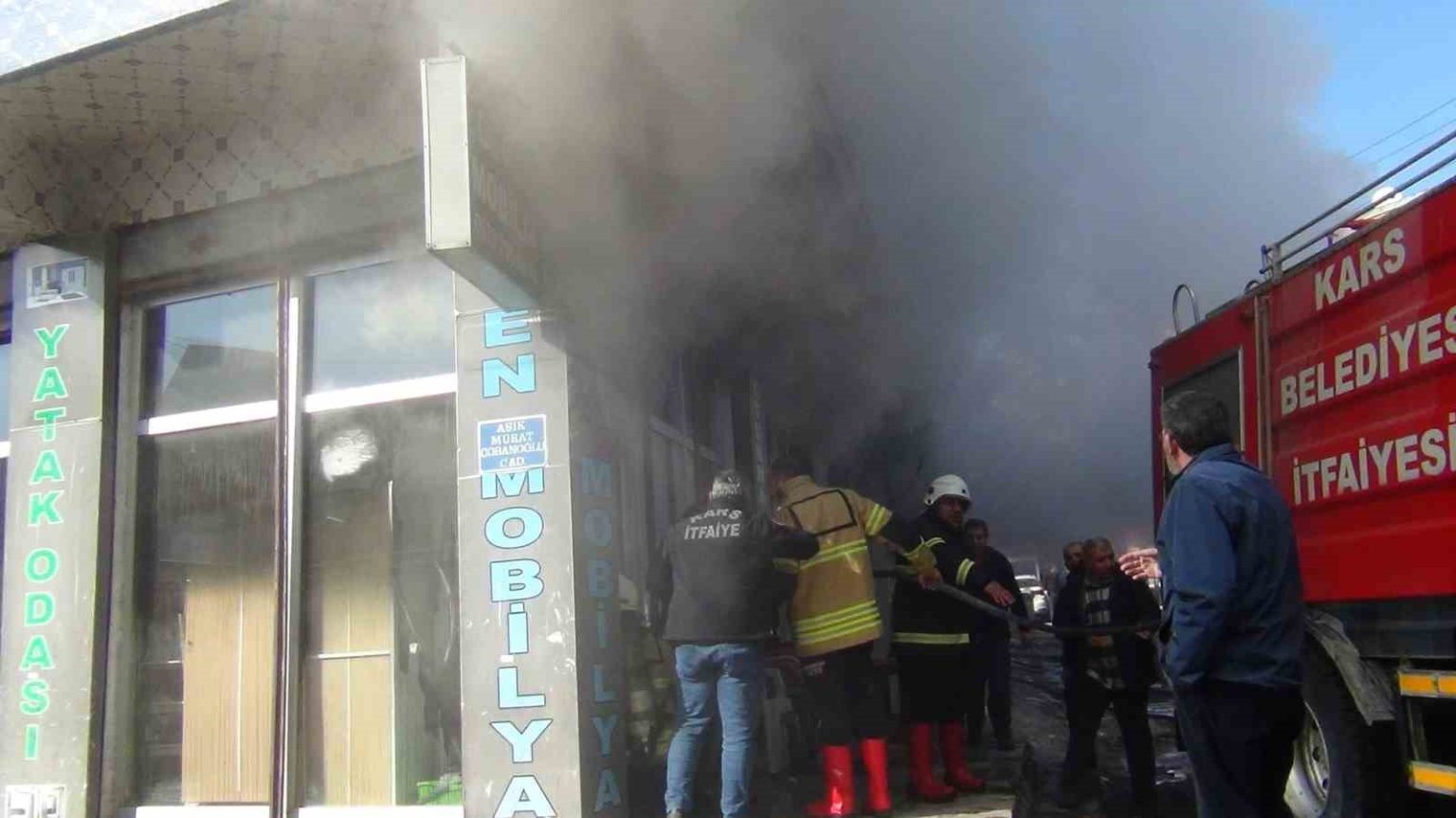 Kars’ta korkutan yangın: Mobilya deposu alevlere teslim oldu