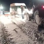 Kars’ta kar kalınlığının yer yer 1 metreyi aştığı Arpaçay’a bağlı Bardaklı köyü yolunda tipi nedeniyle yoldan çıkan minibüs kara saplandı. Durum 112 Acil Çağrı Merkezi’ne bildirildi. İhbar üzerine bölgeye Özel İdare karla mücadele ekipleri, iş makineleriyle sevk edildi.
