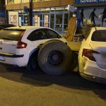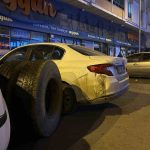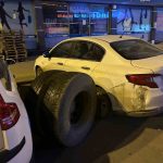 Kars’ta, seyir halindeki bir kamyonun tekeri yerinden koptu. Kopan teker, park halindeki araçlara çarptı.