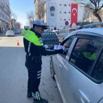 Kars Emniyet Müdürlüğü Trafik Denetleme Şube Müdürlüğü ekiplerince kent genelinde sürdürülen çalışmalar çerçevesinde sürücüler ve yayalar trafik kurallarına uymaları konusunda uyarılırken, bilinçlendirme amacıyla broşür dağıtımı yapıldı.