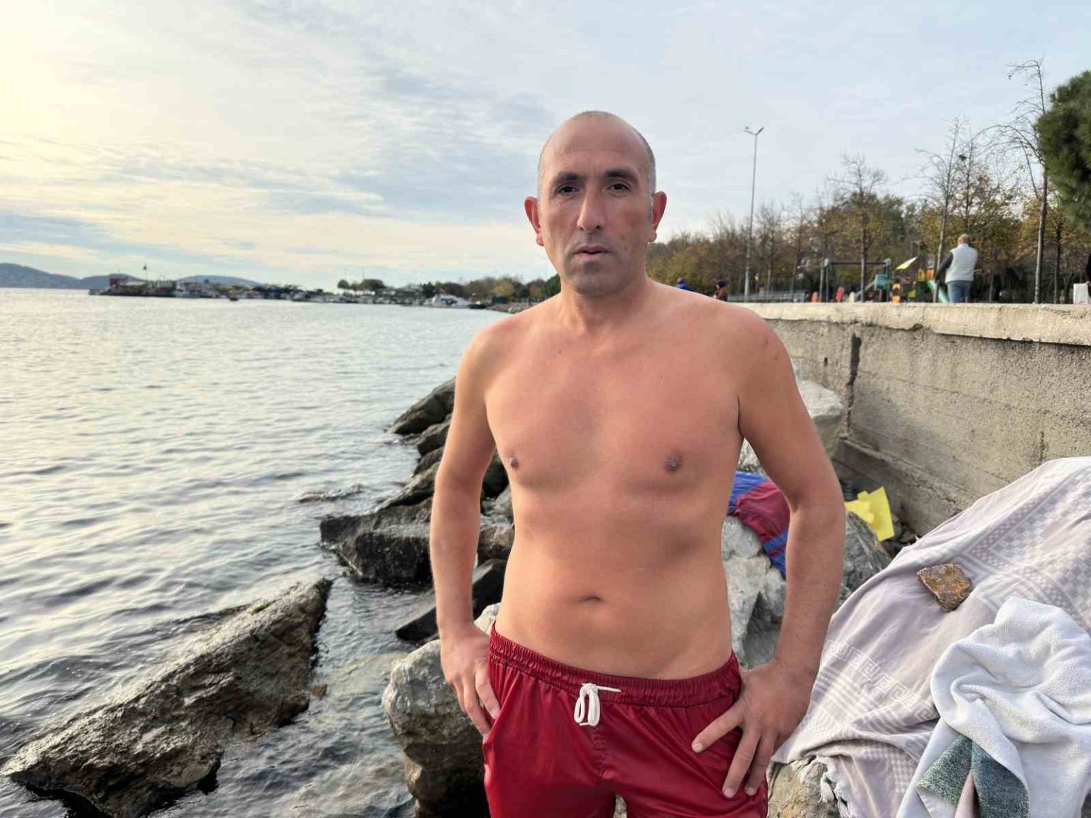 Muzaffer Sönmez, yazdan beridir denize girdiklerini ve hiç hasta olmadıklarını ifade ederek, “Yazın başından itibaren burada denize giriyoruz, deniz güzel. Herkese tavsiye ederiz. Soğuk değil, deniz 15 derece. İlk denize girdiğimizde hava sıcaklığı 26 dereceydi ama deniz 12 buçuk derecedeydi. Şuan dışarısı 11 derece olmasına rağmen deniz suyu sıcaklığı 15 derece. Dışarıda üşüyorsun ama deniz içerisinde herhangi bir şey yok. Vücudu dinç tutuyor. Yazdan beri hiç hasta olmadık. Yazın başından beridir giriyorduk, her gün girmeye devam ettik. Hala da devam ediyoruz. 47 yaşındayım, denize girmeden önce tenis oynayıp geldik. Orada bir spor buradan ikinci bir spor” dedi.