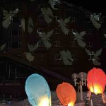 Yanan otele ‘Melek’ sembolleri yansıtıldı