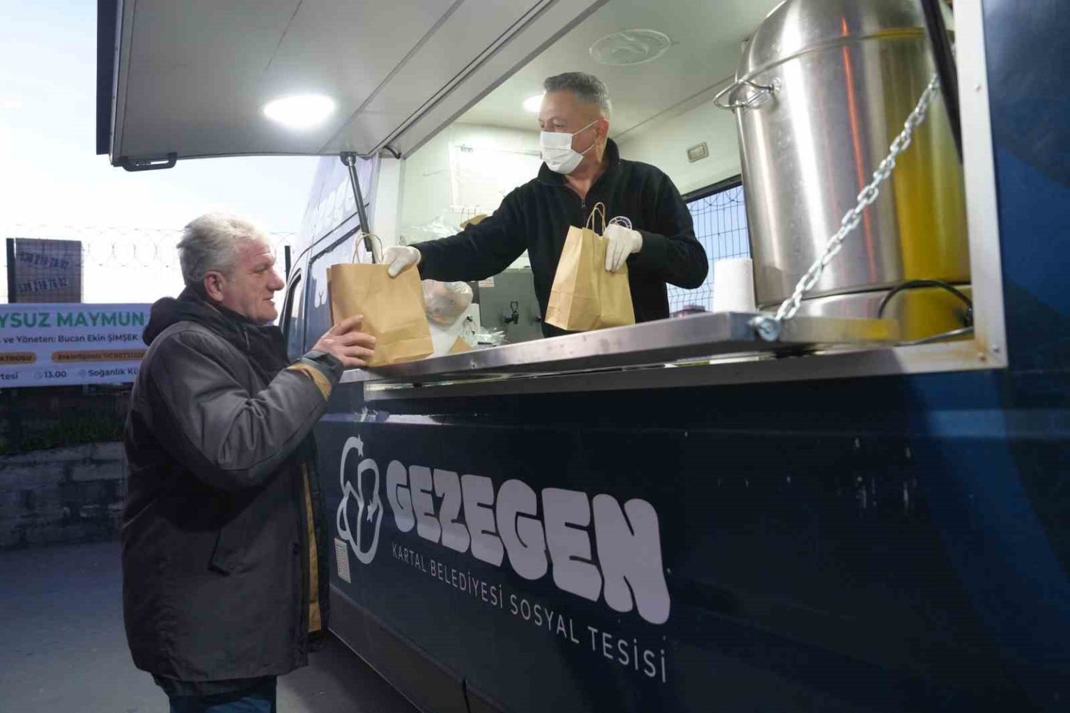 Sabit iftar noktalarının yanı sıra belediye ekipleri, iftar saatinde yolda olan vatandaşları da unutmadı. Metro ve Marmaray gibi yoğun toplu taşıma noktalarında konumlandırılan mobil ikram araçlarıyla sıcak çorba dağıtımı gerçekleştirildi. İş çıkışı evine yetişmeye çalışan vatandaşlara iftar vaktinde yapılan ikramlarla Ramazan’ın paylaşma kültürü Kartal’ın sokaklarına taşındı.