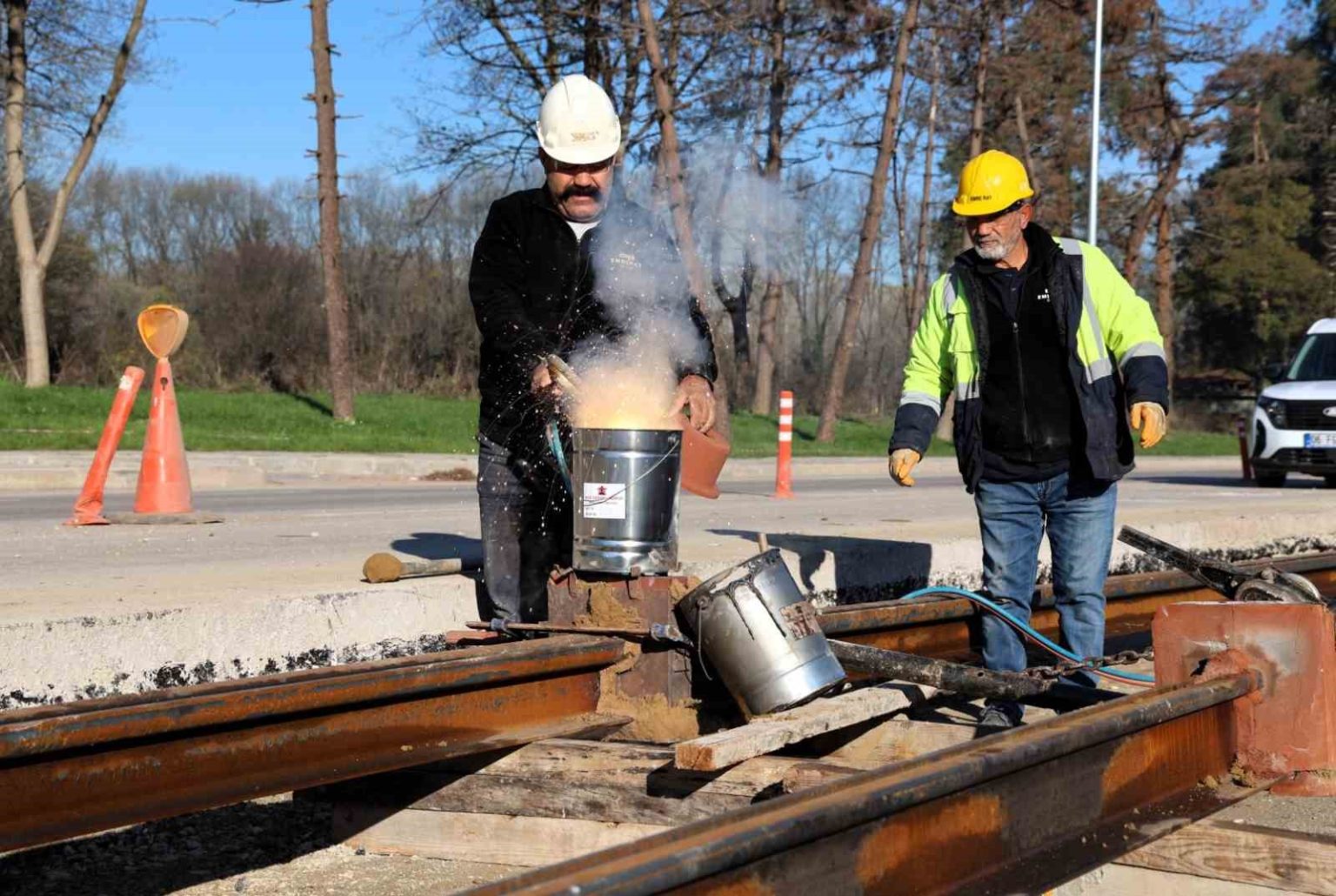 Kocaeli Büyükşehir Belediyesi, raylı sistem ağını bu kez “Kartepe Tramvay Hattı” ile güçlendiriyor. Kenti demir ağlarla ören büyükşehir, bu hatta döşenen raylarda kaynak işlemlerine başladı.