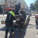 Antalya’nın Manavgat ilçesinde trafik polisinin durdurduğu plakası kağıtla kapatılmış motosikletin sürücüsüne 140 bin TL para cezası uygulanırken, motosiklet 30 günlüğüne trafikten men edildi. Kaskının çalındığını ve ceza yememek için kapattığını belirten motosiklet sürücüsü, “Plakanızı kapatmayın, kasktan cezanızı yiyin” nasihatinde bulundu.