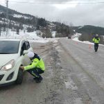 Kastamonu’da jandarma ekipleri tarafından buzlanma sebepli kazaların önüne geçmek için kış lastiği denetimleri sıklaştırıldı.