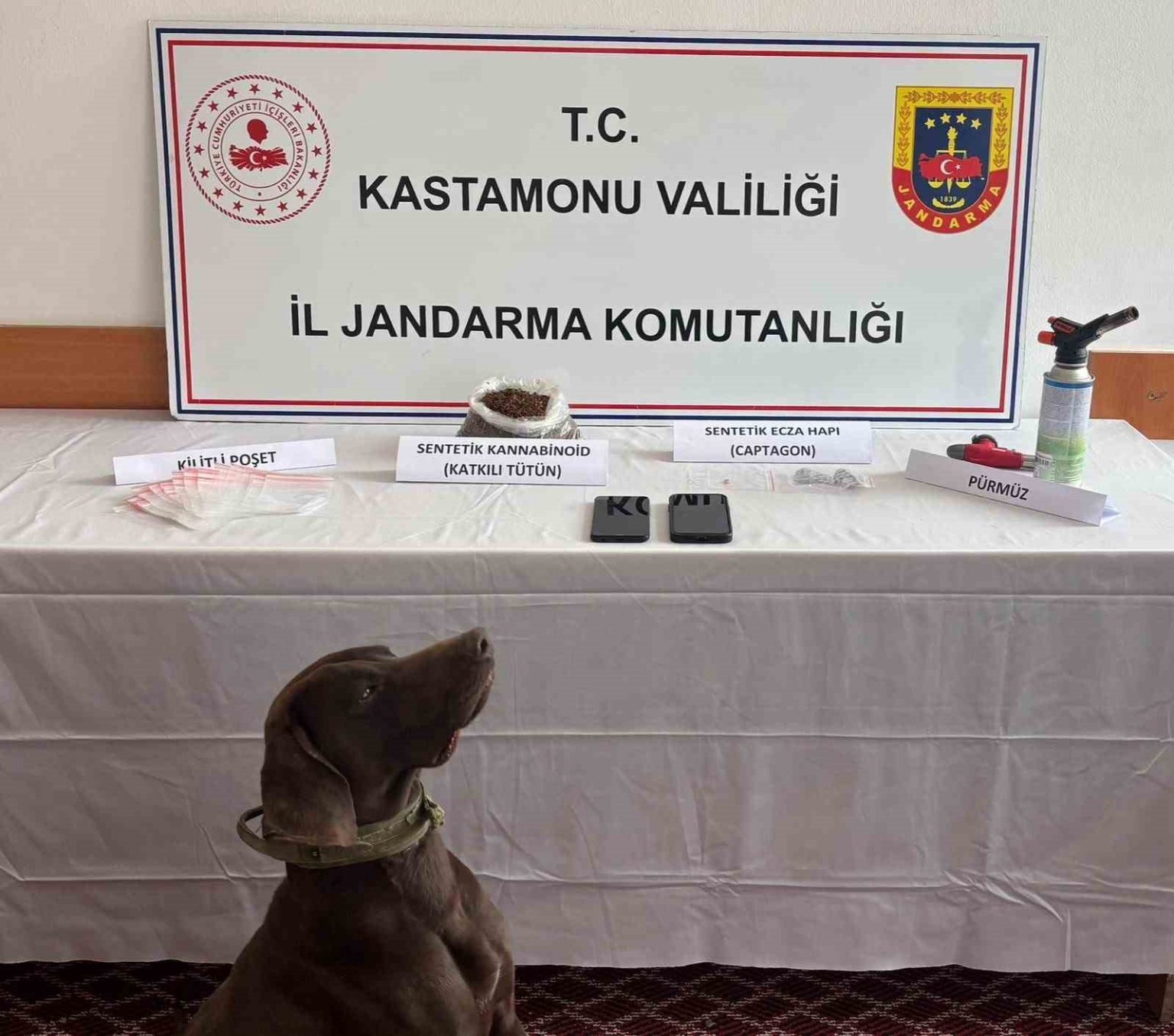 Edinilen bilgiye göre, Kastamonu İl Jandarma Komutanlığı ekipleri tarafından uyuşturucuyla mücadeleye kapsamında operasyonda düzenlendi. Operasyonda yapılan aramalarda 155 gram sentetik kannabinoid katkılı tütün, 2 adet extacy hap, 1 adet kaptagon hapı, 4 adet uyuşturucu kullanma aparatı, 2 bin TL nakit para, 2 adet cep telefonu, 405 adet şeffaf kilitli poşet ele geçirildi.