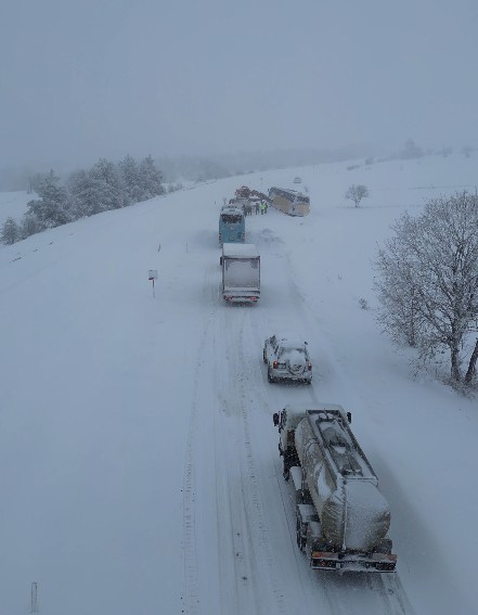 Kastamonu-Araç kara yolunda kar ve tipi sebebiyle bir yolcu otobüsü yoldan çıkarak kara saplandı. Karda mahsur kalan otobüsteki yolcular ise bölgeye sevk edilen başka bir araçla tahliye edildi. Yolcu otobüsü vinç yardımıyla çekilerek kurtarıldı. Kurtarma çalışması sırasında kapanan yolda uzun araç kuyruğu oluştu.