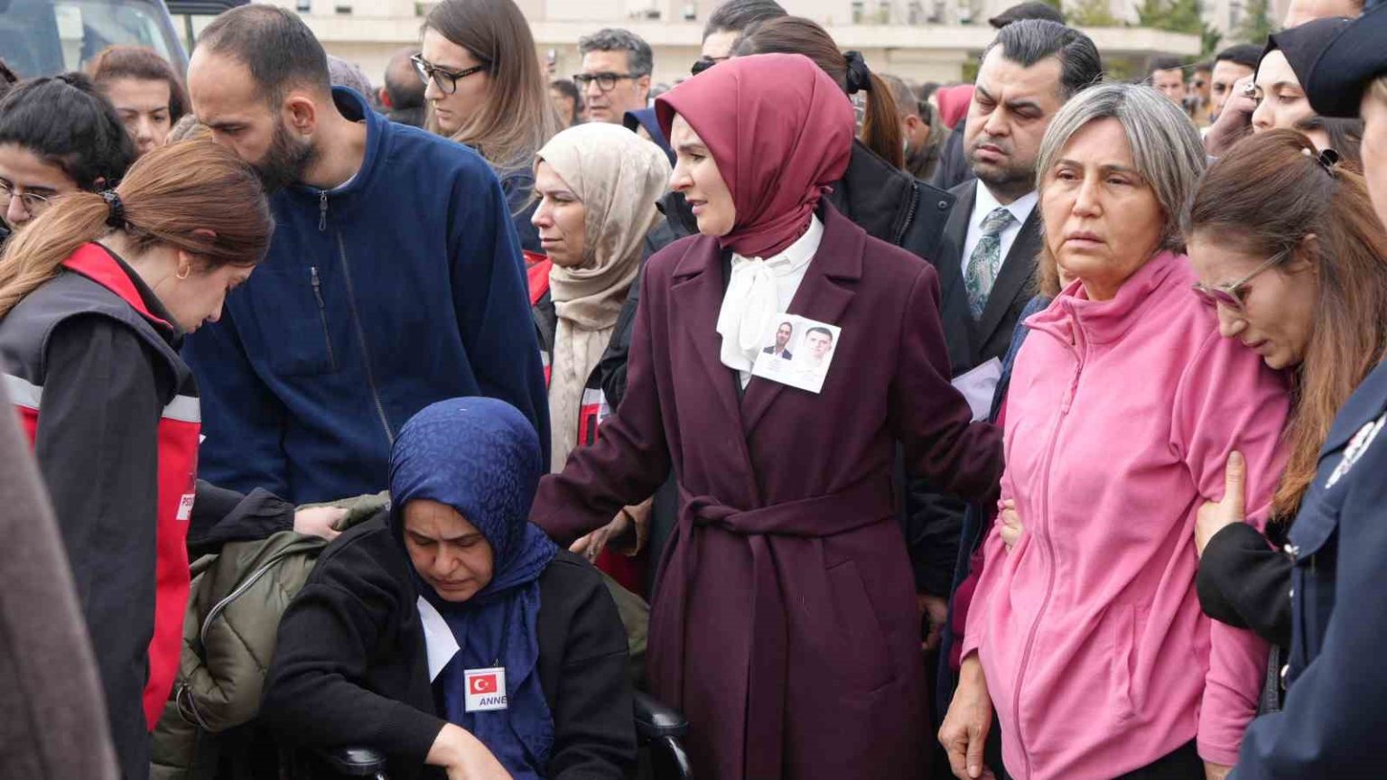 Cenaze töreninde Aile ve Sosyal Hizmetler Bakanı Mahinur Özdemir Göktaş ise şehit yakınlarına destek oldu.