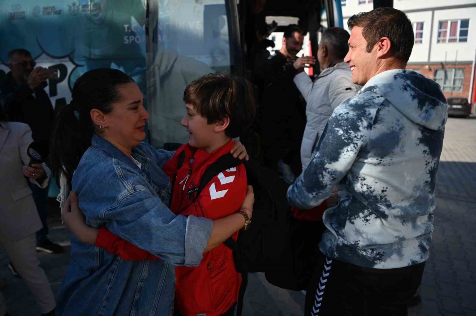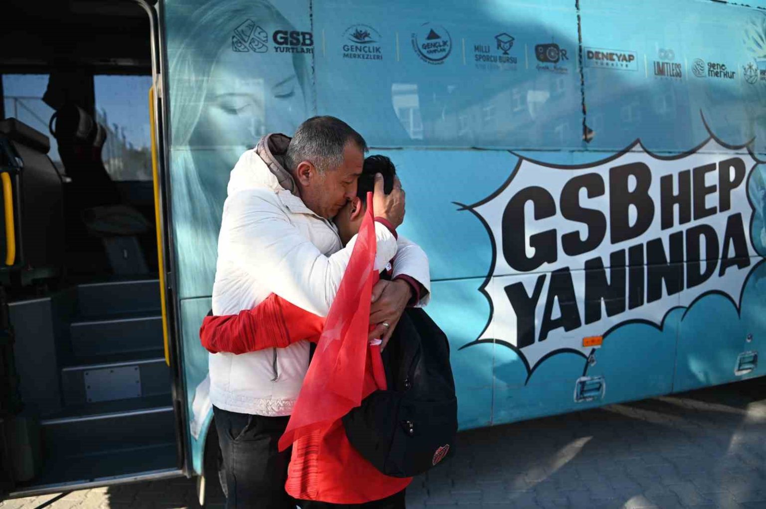 Kafile Başkanı Mustafa Gökçe, “Kuşadası’na ulaşmak için çocuklarla birlikte yaklaşık 26 saat yolculuk yaptık. Kuşadası’nda aileler çok tedirgin olmuştu. Biz biraz endişe içerisindeydik. Çünkü üzerimizde 21 evladımızın sorumluluğu vardı. Bugün çok şükür burunları bile kanamadan çocuklarımızı ailelerine emanet ettik. Başta Cumhurbaşkanımız Recep Tayyip Erdoğan olmak üzere Gençlik ve Spor Bakanı Osman Aşkın Bak’a ve bizimle ilgilenen herkese çok teşekkür ediyorum” dedi.
